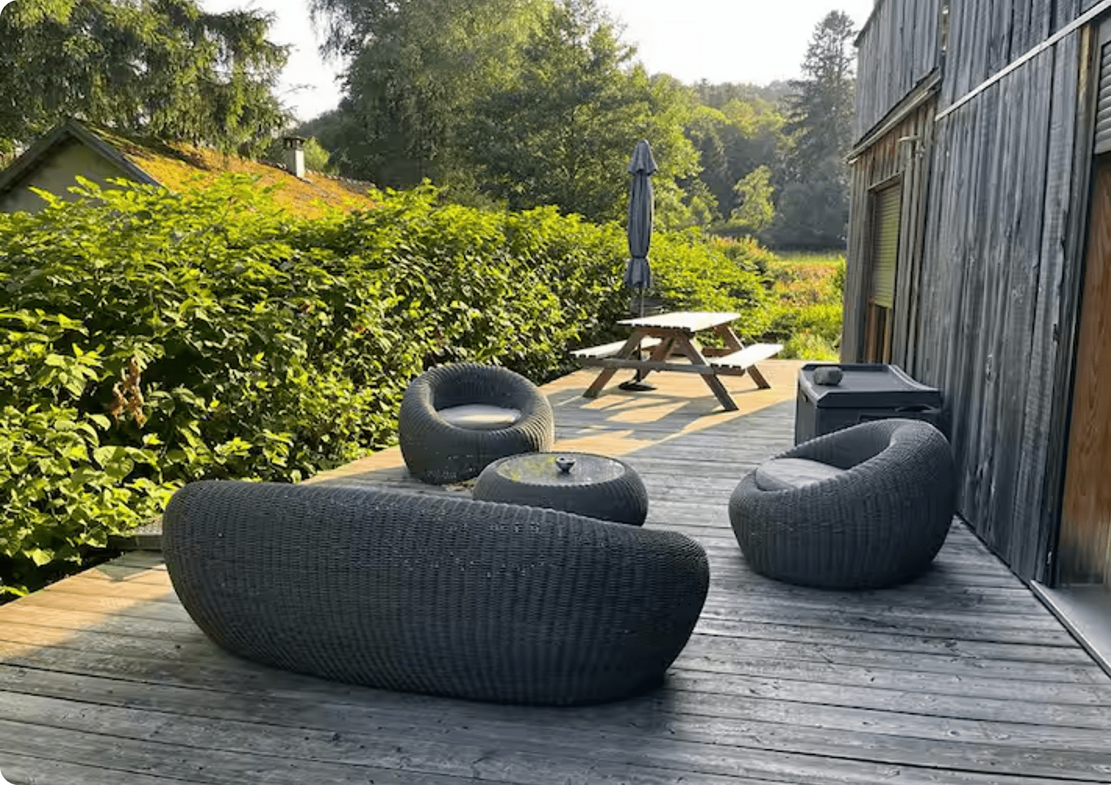 Notre gîte pour 2 personnes se trouve au pied de la Planche des Belles Filles, au rez-de-chaussée d'une maison atypique en ossature bois se trouvant au bord d’un étang, dans un environnement unique, extrêmement calme et à l’abri de tout regard.