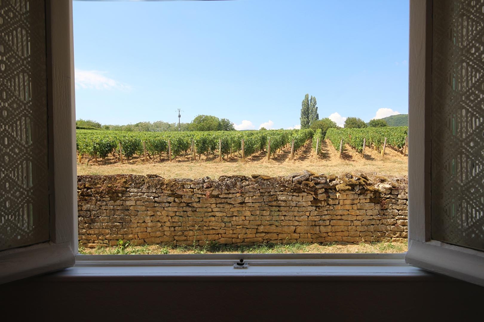 Maison de pays du début 20ème siècle soigneusement restaurée en lisière de vignoble au cœur de la superbe vallée de Vaux, localement surnommée « la petite Suisse chalonnaise » eu égard à son climat généreux, sa position reculée et son statut « un peu à part ». Au sein d'un hameau résidentiel calme et tranquille bordant le cœur du charmant bourg viticole typique de Saint-Jean-de-Vaux où sont produits des vins de Bourgogne Côte Chalonnaise et Crémants (parmi les 5 villages composant ce riche petit territoire confidentiel), lové au creux d'un ravissant vallon préservé de verdure et nature. Splendide cadre champêtre viticole vallonné, en « balcons », entre vignobles, prairies, bocages et forêts (nombreuses balades et randonnées sur place). Gîte de bon confort. Agréable cachet campagnard d'inspiration contemporaine. Ambiance zen et douce. Vaste terrasse panoramique, exposée et ombragée. Belle vue dégagée sur le vignoble et la campagne environnante. Magnifiques panorama & paysage.