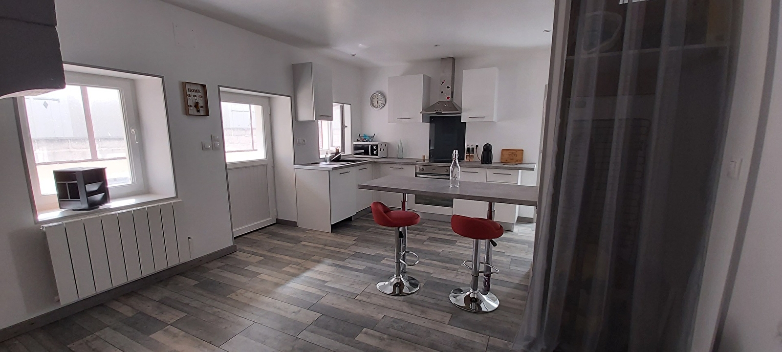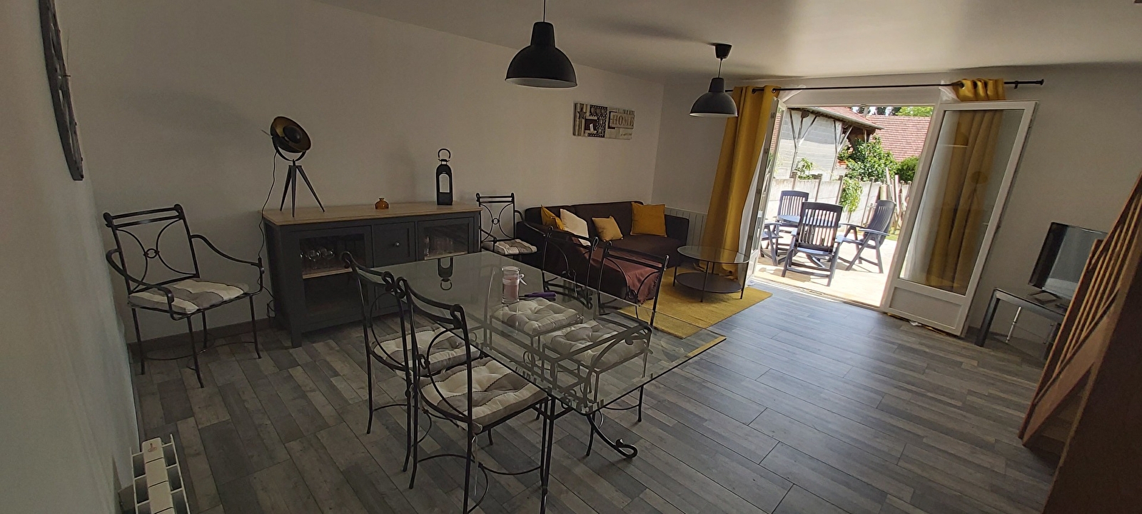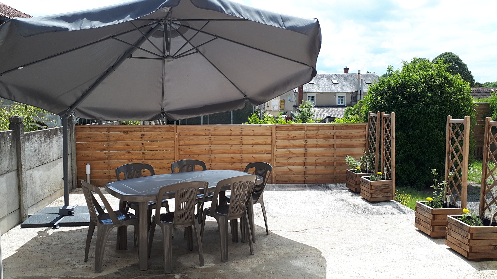Vous disposerez d'un salon/ séjour, bureau, cuisine équipée, d'une terrasse avec tout le nécessaire: barbecue, salon de jardin.