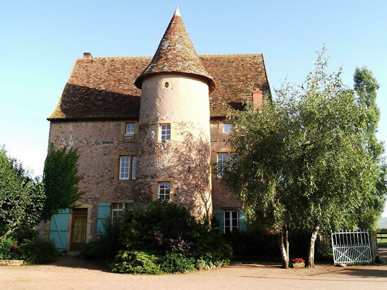 Propriétaire des lieux depuis un siècle, la famille Mathieu vous accueille au sein d'une très rare authentique "maison forte" de caractère du XVIe, intégralement restaurée, exceptionnel édifice de style renaissance parfaitement sauvegardé pétri de grande histoire, ancien "relais de chasse" du seigneur de Busseuil (rassemblant jadis les seigneurs du Brionnais lors de grandes chasses), adossé "en étoile" à plusieurs dépendances autour d'une grande cour, parfait "terrain de pétanque naturel". Totale tranquillité au sein d'un petit hameau rural (résidentiel & agricole) blotti en pleine campagne préservée au creux d'un sublime plateau de bocage vallonné (avec les paisible vaches charolaises comme proches voisines) traversé par une bucolique rivière poissonneuse, à proximité d'une belle forêt sauvage. Véritable havre de quiétude 100% relaxant, immergé dans un littéral "décor de carte postale". Gîte de bon confort. Ultra spacieux. Beaux volumes. Chaleureux cachet campagnard "bourgeois" un brin "vintage" mixé à l'insolite ambiance "châtelaine" totalement dépaysante des lieux (magistral manteau de cheminée & escalier à "vis" en pierres, voûtes, poutres, plafond à la française, linteaux en pierres gravé etc…). Large terrasse en gravier (naturellement ombragée) ouverte sur un agréable jardin engazonné & arboré (balançoire & table ping-pong). Superbe vue dégagée sur la campagne environnante.