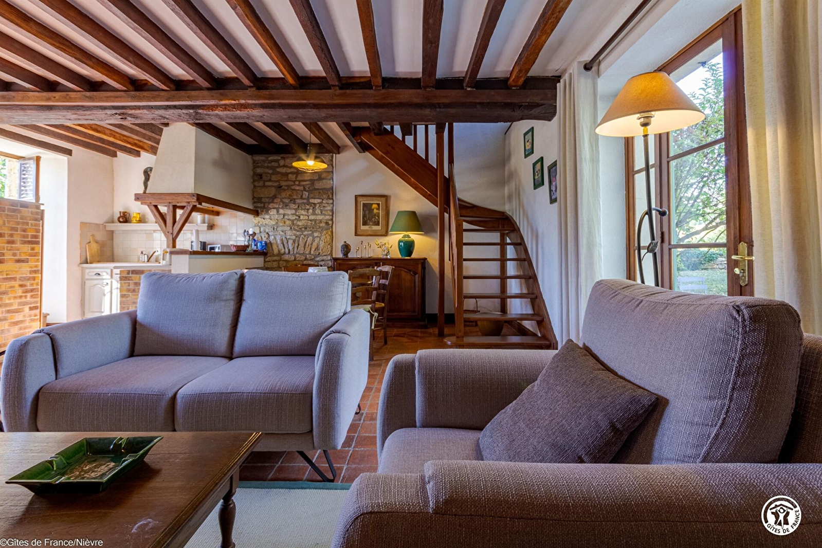 Dans le haut Nivernais, maison indépendante avec au rez-de-chaussée, séjour avec cuisine, coin salon. A l'étage, 2 chambres (1 avec 1 lit 140x190, l'autre avec 1 lit 160x200), salle d'eau (douche), wc indépendant. WIFI. Jardin et terrasse.