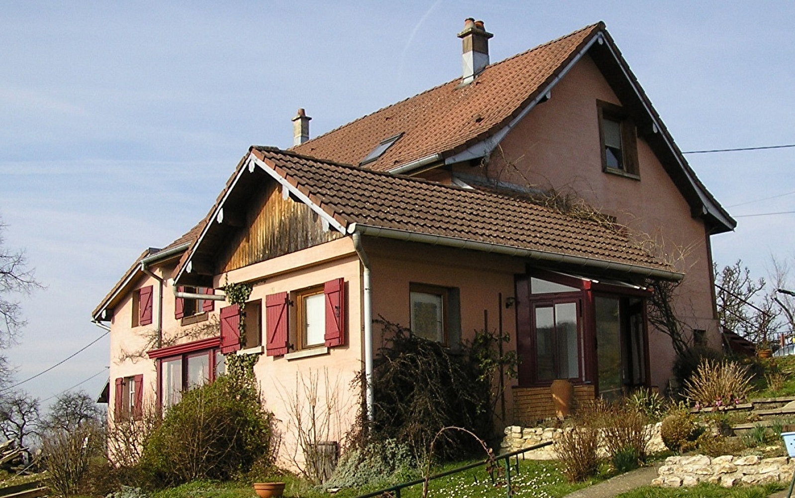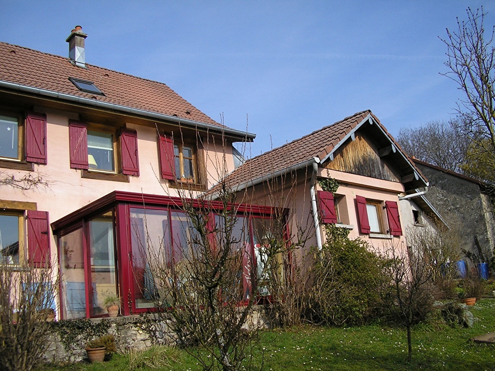 Proche de la frontière suisse, à 10 km de Montbéliard. Epicerie, boulagerie, journaux-presse sur place. Proche des sentiers de randonnée GR5 et GR de Pays. Entrée indépendante, hall, cuisine, salle de bain, douche, WC, salle à mager, 1 chambre au rez-de-chaussée. 2 chambres mansardées à l'étage. Garage fermé.