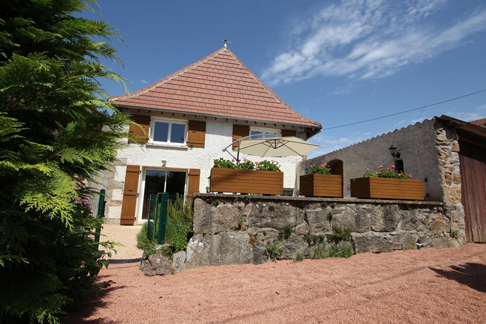 Lætitia & Fabien vous accueillent au sein d'une authentique fermette traditionnelle datant du XVIIIème siècle intégralement restaurée & revisitée en douce villégiature, blottie au calme à flanc de coteau sud-ouest exposé, en bordure d'une petite route, au sein d'un pittoresque mini hameau rural résidentiel. Magnifique écrin paysagé alentour, totalement reposant & relaxant, niché en pleine campagne brionnaise de douce montagne vallonnée (sur un espace naturel protégé en ZNIEFF pour ses richesses faunistiques & floristiques), au creux d'un verdoyant vallon de prairies bocagères boisées que traverse une petite rivière (accueillant les paisibles & célèbres vaches charolaises locales en saisons), cerclé de belles & vastes forêts sauvages (à parcourir lors de relaxantes balades à pied ou VTT). Quiétude & tranquillité au cœur d'un apaisant cadre rural préservé, mixant agriculture & pleine nature, lové au pied de la célèbre Montagne de Dun, empreinte de légendes & mystères (point culminant du territoire avec 736m), exceptionnelle sentinelle panoramique à 360° (offrant par temps clair une incontournable vue "jusqu'à 35 clochers") & site chargé d'histoire (notamment celte) abritant une élégante chapelle romane du XIIe en son sommet. Gîte de bon confort aménagé à l'endroit des anciennes étables. Chaleureux cachet campagnard aux accents contemporains. Agréable large terrasse panoramique (végétalisée & fleurie) adossée à une mini courette close (sise "à l'ombre" d'un ancien pigeonnier en tourelle), offrant une belle vue dégagée sur le hameau & la campagne environnante (dont les toutes proches pâtures).