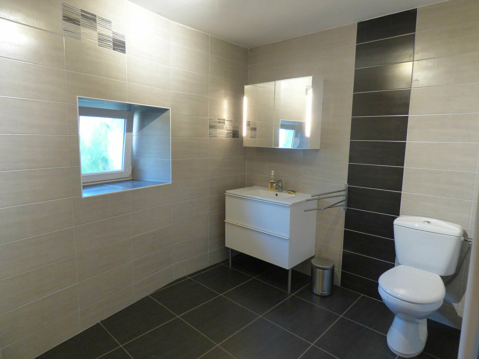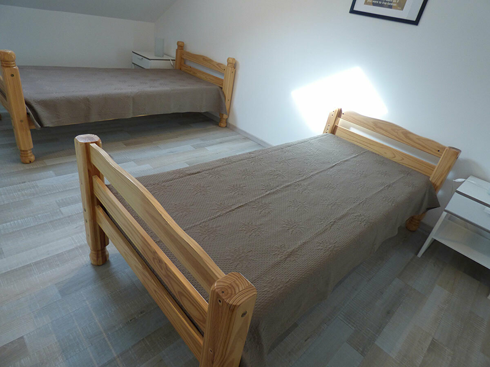 Au premier, vous disposerez d'une chambre avec un lit double de 160 + rangements, et d'une chambre avec trois lits simples de 90 + dressing. Entre ces deux chambres un petit WC avec lave-mains.