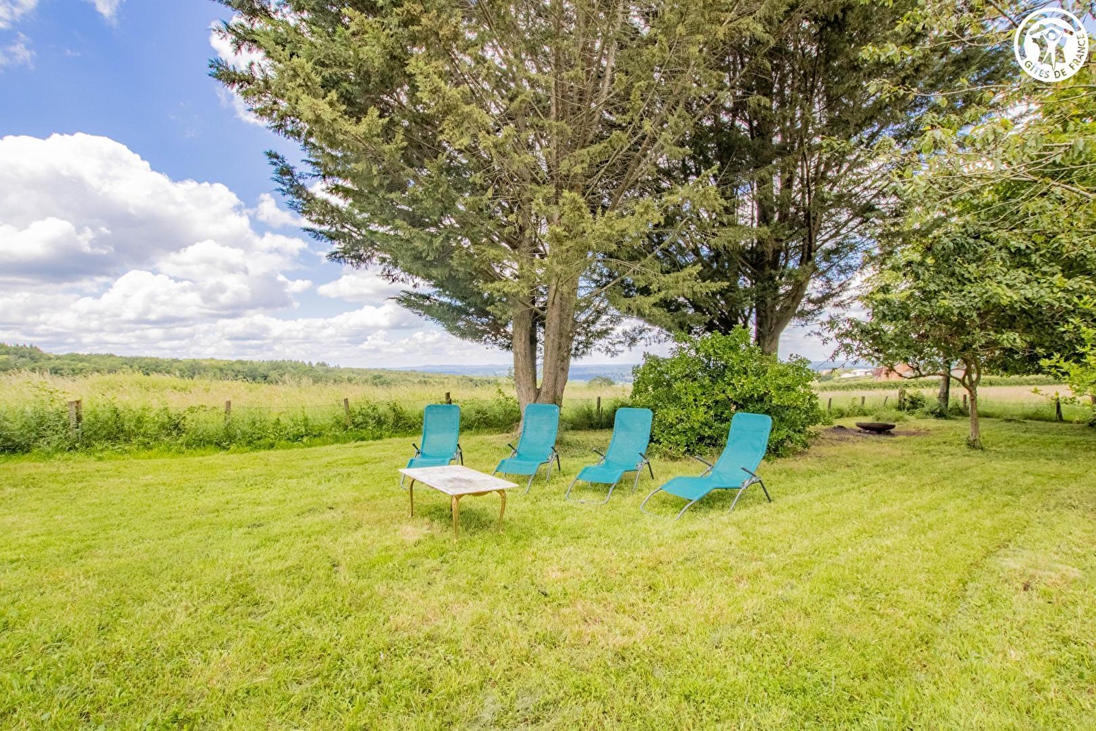 Authentique ferme brionnaise traditionnelle du XIXe soigneusement restaurée nichée à flanc de colline, "en balcon" & "belvédère panoramique", sur un coteau exposé dominant le sublime bocage local s'étendant à perte de vue, telle une "carte postale". Absolue tranquillité en pleine campagne brionnaise aux confins d'un mini hameau rural, résidentiel & agricole. Cadre enchanteur, blotti en lisière d'une douce pâture (accueillant en saison les paisibles vaches charolaises locales) à deux pas d'une vaste forêt domaniale sauvage (à parcourir à pied ou VTT), au creux d'un bucolique plateau vallonné de prairies bocagères. Somptueux panorama & paysages. Véritable havre de paix & repos. Gîte de grand confort. Très spacieux. Exceptionnelle pièce de vie de 70m² riche d'un superbe espace baigné de lumière lové sous un volume cathédral (& son élégante "pluie" de luminaires en "gouttes d'eau" ultra stylisée !). Chaleureux cachet campagnard "bourgeois", cossu & raffiné, conjugué à une belle restauration patrimoniale (conservation des riches traces du bâti d'origine : murs & manteaux de cheminée en pierres, briques, poutres, linteaux en pierres & bois…). Énormément de charme & caractère. Ambiance cosy & hyper douillette. Equipement très complet & "déco" ultra soignée, digne d'une douce "maison de famille". Intimiste ravissant jardin clos de 1000m², engazonné, végétalisé & arboré (pruniers, poirier, pommier, framboisiers, muriers, cerisier… / cueillette possible) doté d'une balançoire & d'un mini bassin. Agréable terrasse agrémentée d'un salon de détente offrant une splendide vue dégagée.