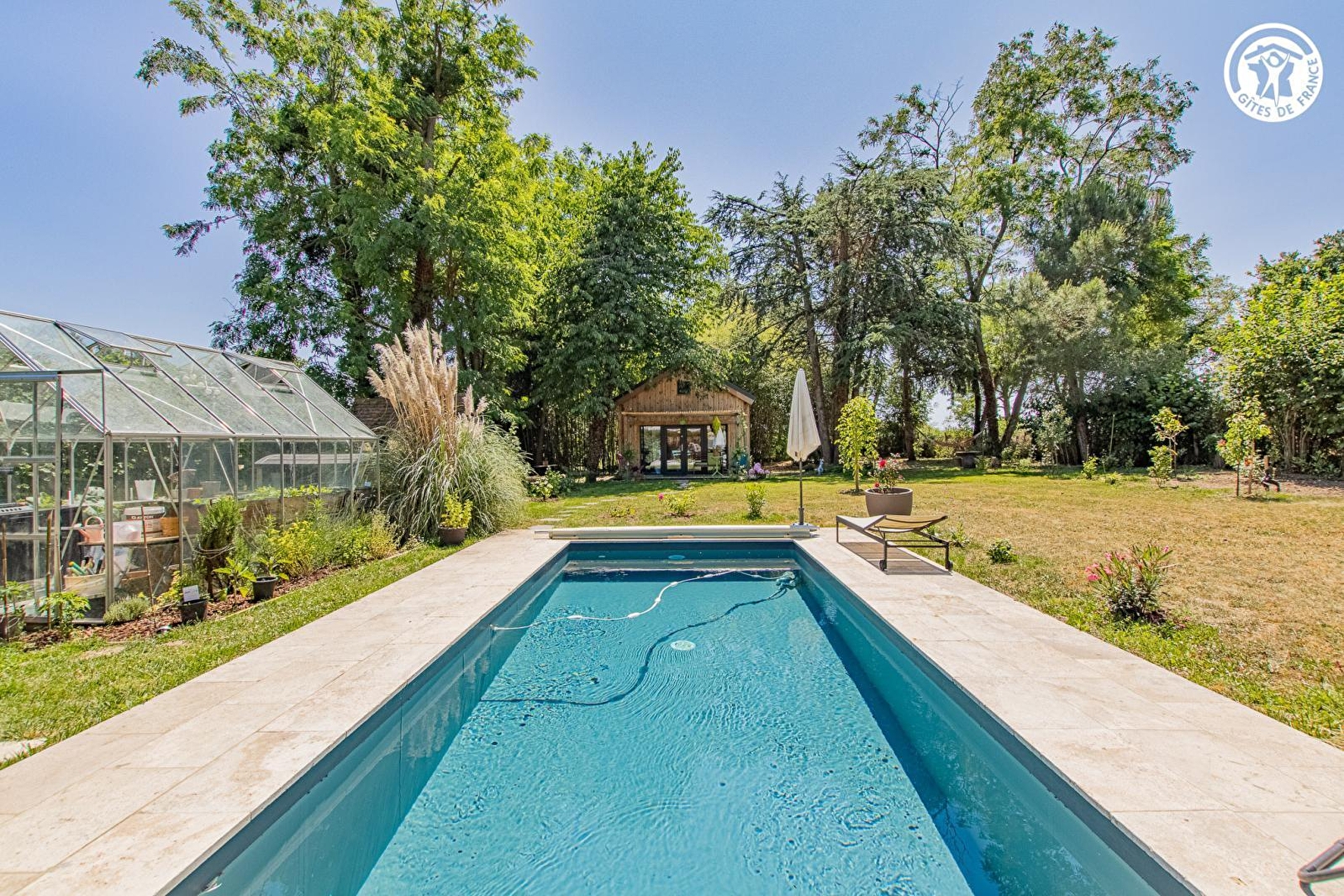 Composition : Maison individuelle + petit chalet indépendant (accès par chemin carrossable empierré sur 50m). Wifi (fibre). Chauffage central fioul. Poêle à pellets bois + cheminée. Rdc surélevé (3 marches) : séjour-cuisine-salon, Wc indépendant. 1er étage : 2 chambres (lit 2 p. 160x200cm / lit 2 p. 140x190cm), salle d'eau (douche) sans porte ("ouverte" avec rideau). Chambre au rdc dans un chalet indépendant côté jardin (lit 2 p. 160x200cm) avec sde privative (douche) + Wc en "toilette sèche" (en accès par l'extérieur). Jardin (6000m²) + terrasse + terrasse abritée + piscine chauffée avec douche (6x2.5m) + parking privés. Commerces et supermarchés 7 km.