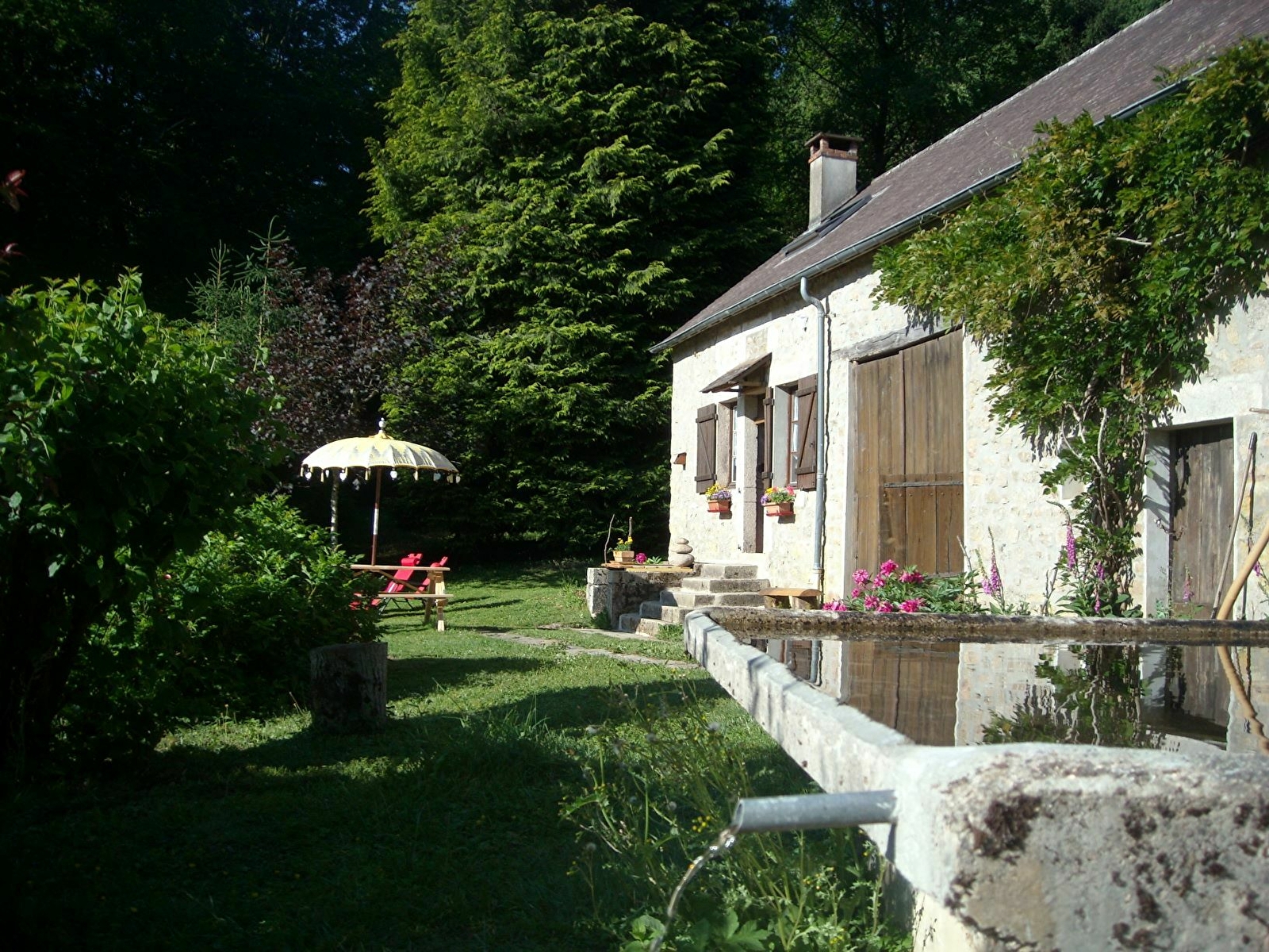 Niché dans un écrin de verdure et offrant un magnifique panorama; proche de la tumultueuse rivière la Cure (200m.), en lisière de forêt, isolée, au calme.