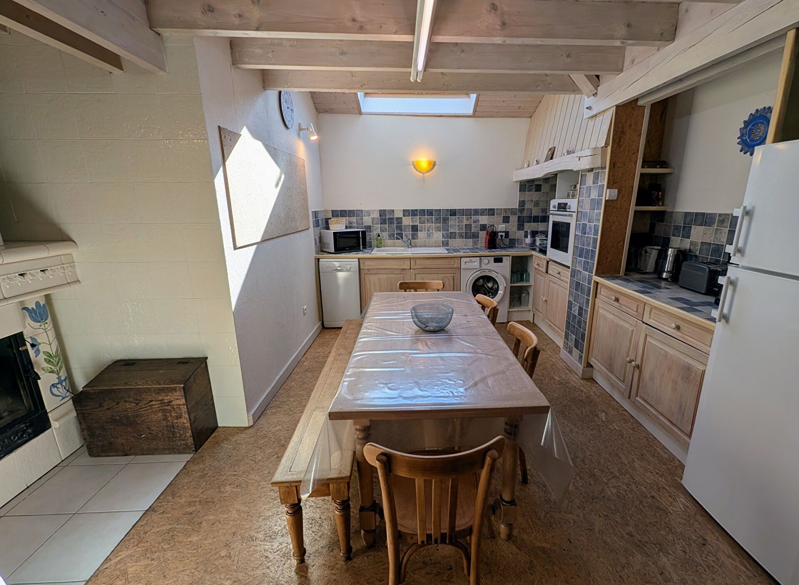 Au rez-de-chaussée, vous trouverez un séjour chaleureux avec cuisine entièrement équipée (four, lave-vaisselle, lave-linge, etc.), un coin salon confortable avec canapé et TV écran plat. Deux chambres sont à disposition :