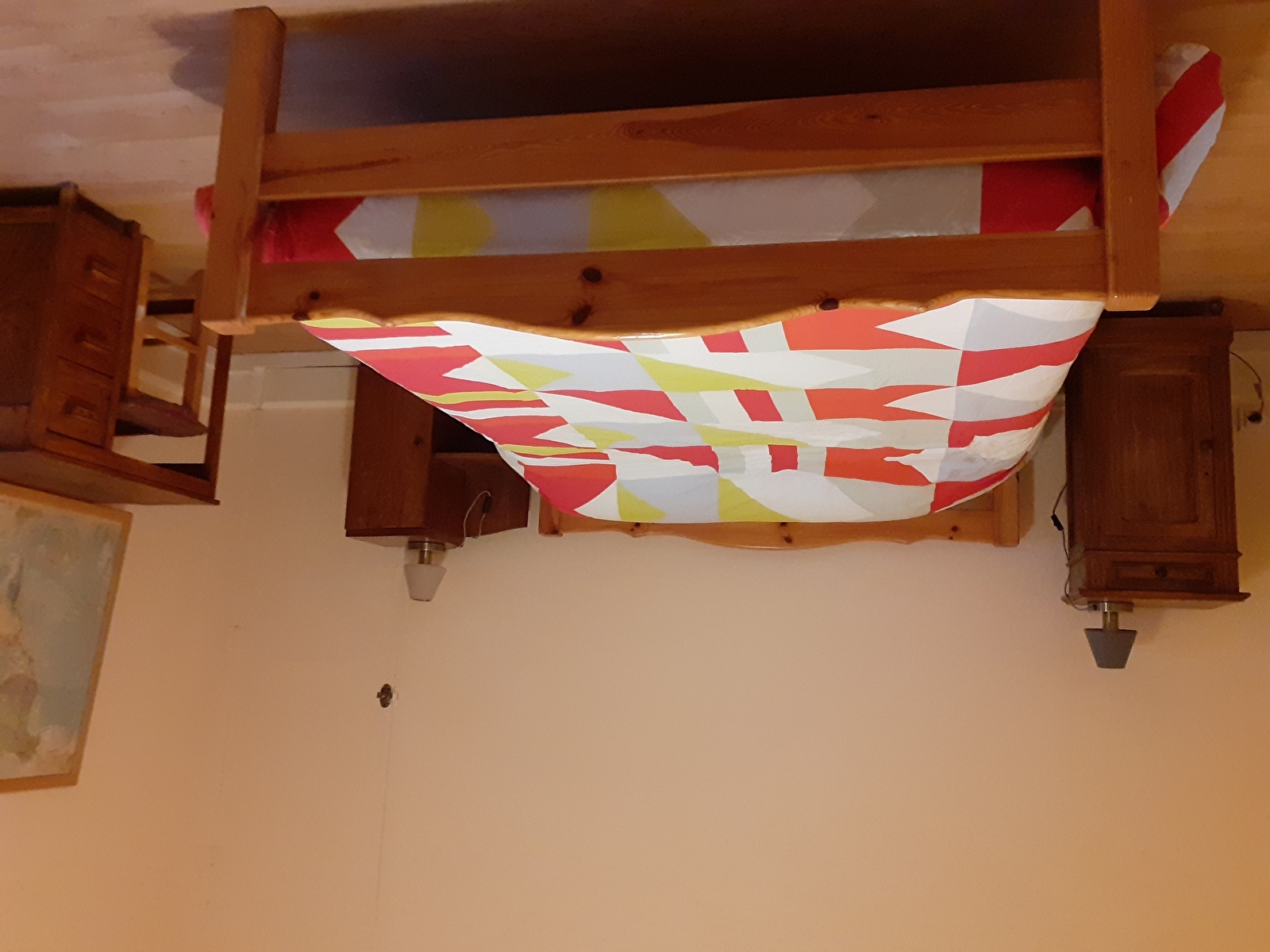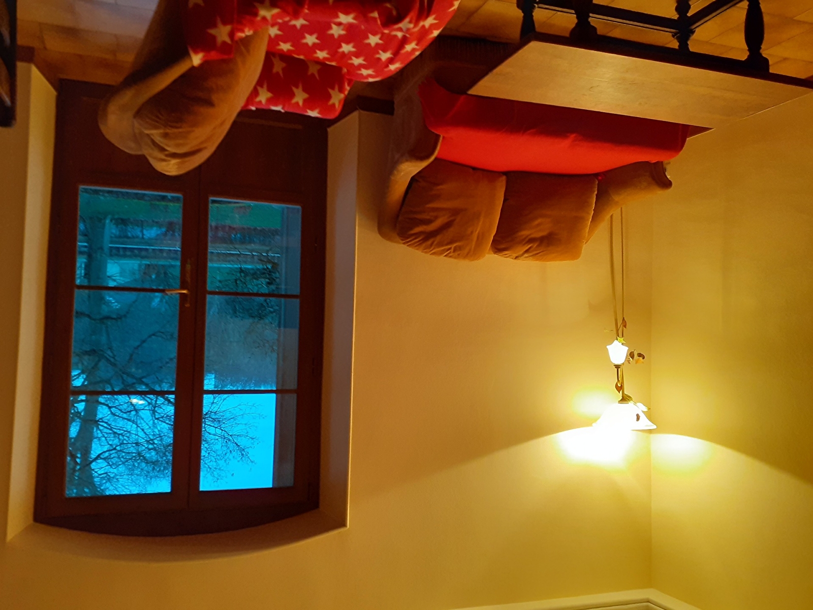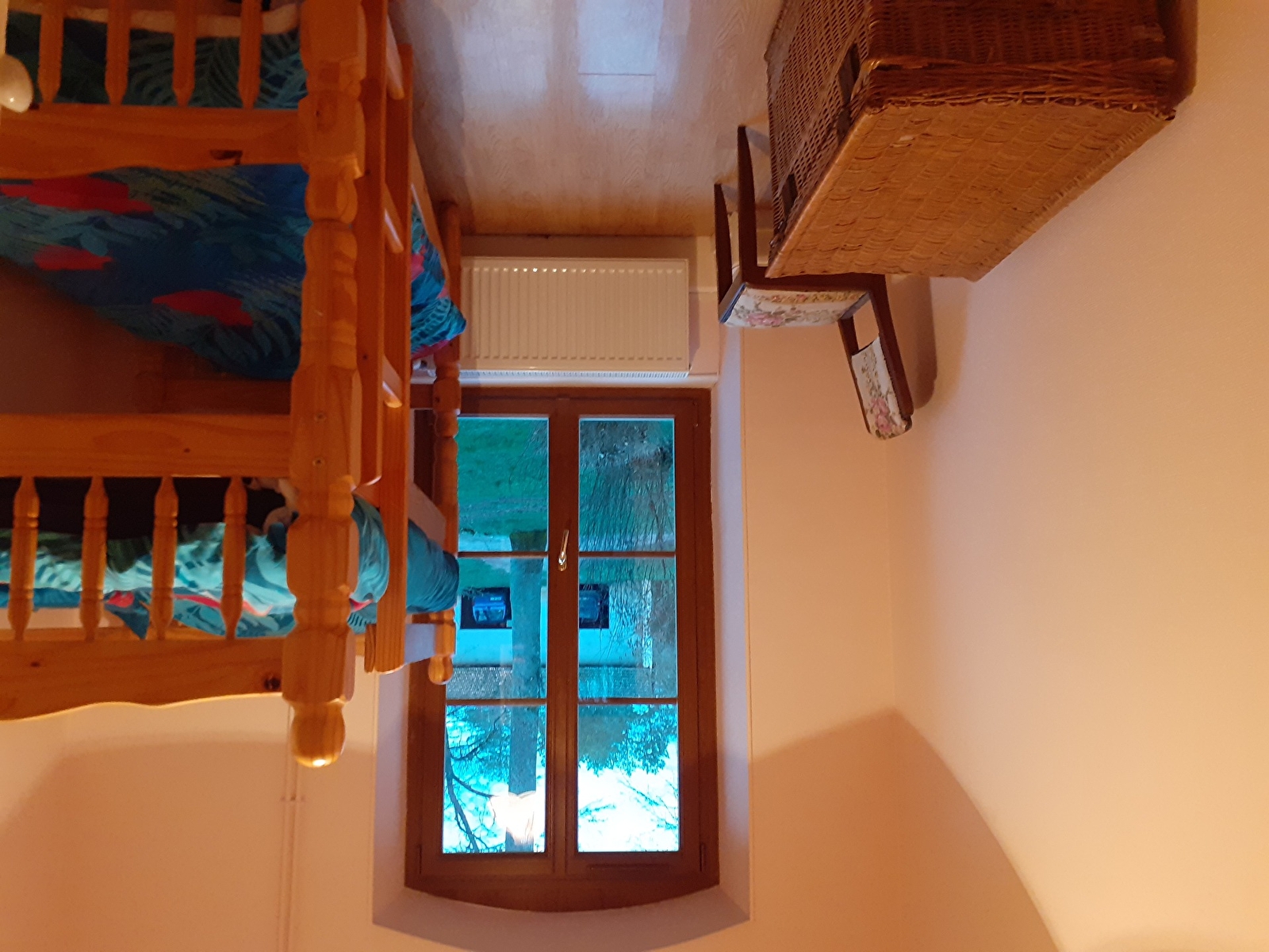 Rez-de-chaussée de maison sur un terrain arboré, le gîte peut accueillir 6 personnes.