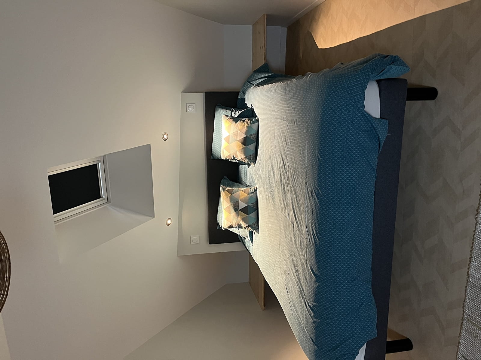 Meublé 7 pers. Deux chambres une rdc et une à l’étage la chambre rdc est équipée de deux lits simples, la chambre à l’étage est équipée d'un lit grande taille et d’un lit simple ainsi qu'un toilette à l’étage. L
