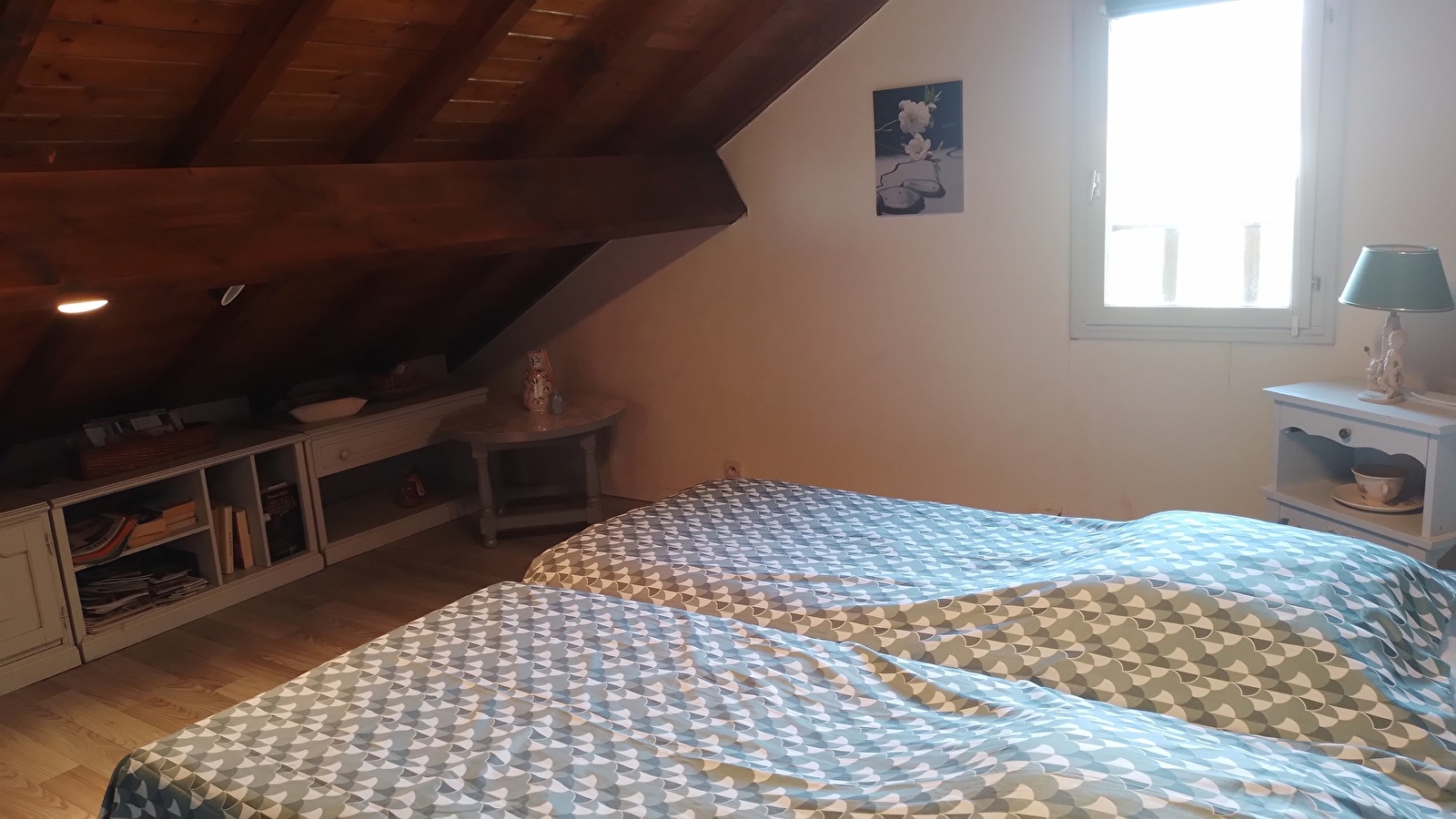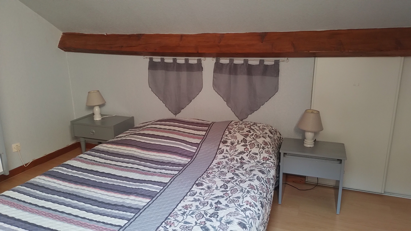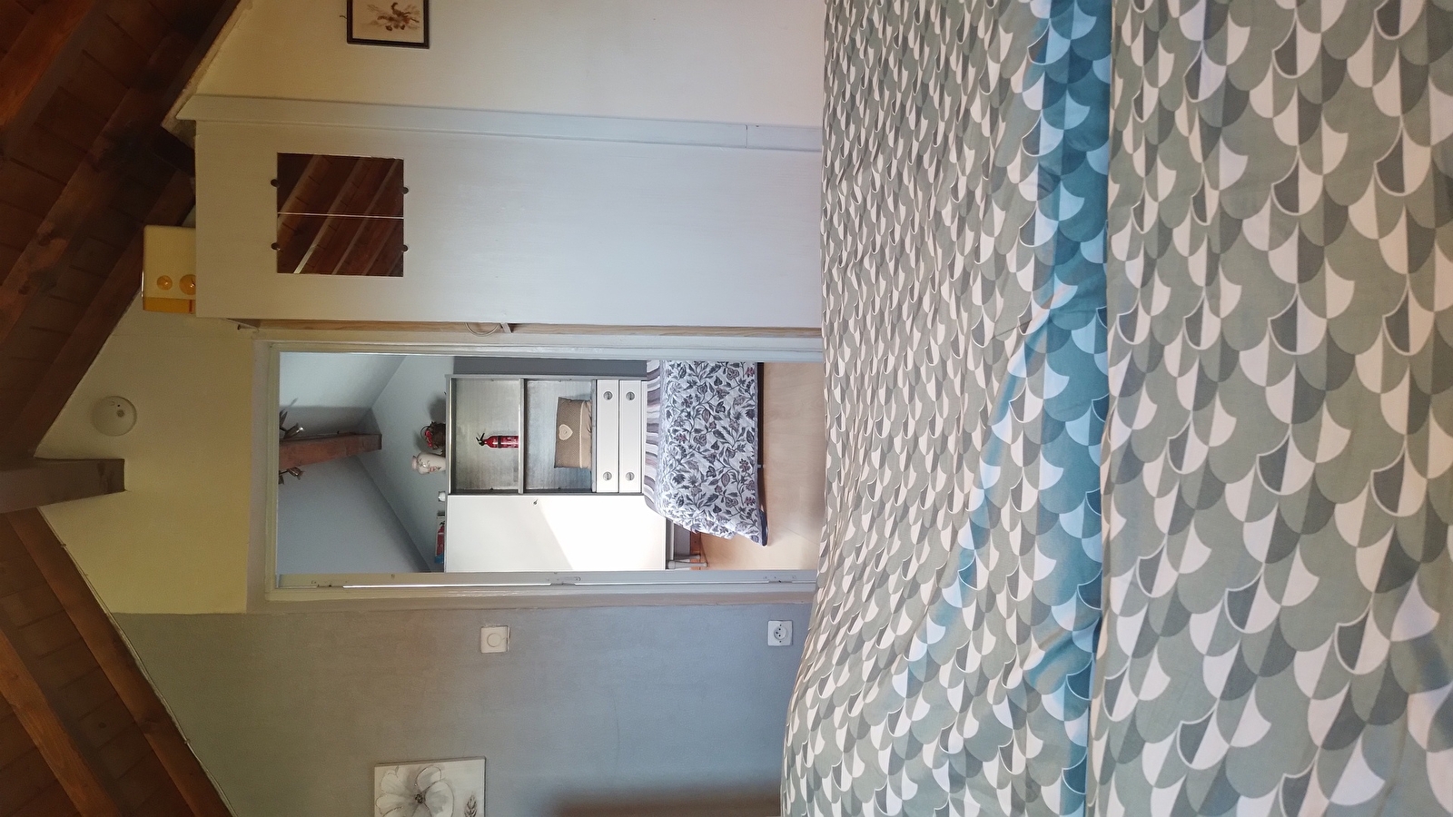 A l'étage, le gîte comprend une chambre double avec un lit 140.