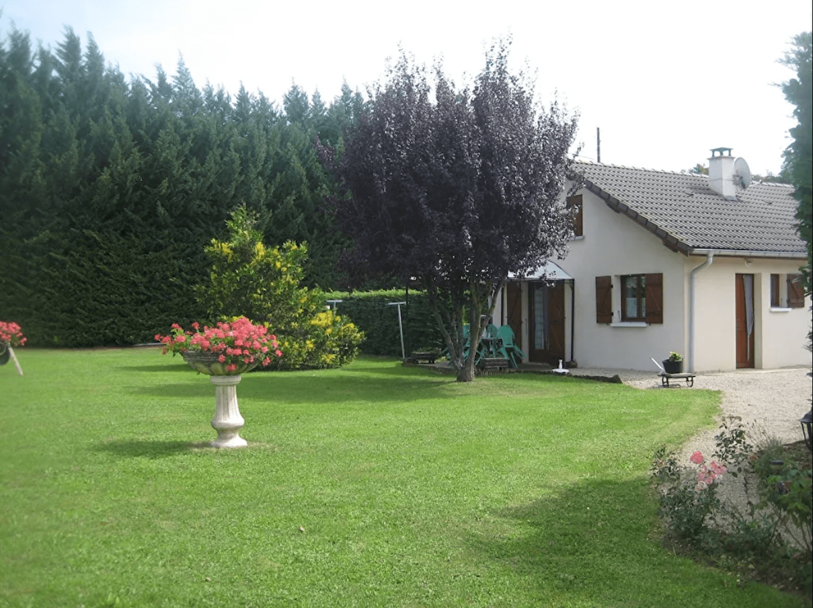 La maison est entourée d'un vaste jardin fleuri à la belle saison avec une terrasse couverte (pergola) donnant sur le joli jardin de 2000m2.