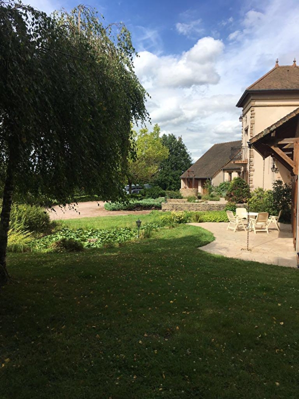 Composition : Maison individuelle sur 2 niveaux. Wifi. TV (bouquet satellite). Chauffage électrique. Rdc surélevé : Cuisine, séjour-salon (dont bureau / imprimante PC), 2 chambres dont 1 avec TV privative (2 x 1 lit 2 p. 160x200cm), salle de bain (baignoire balnéo + douche), wc indépendant. 1er étage : 5 chambres (2 lits 1 p. 90x190cm / 3 x 1 lit 2 p. 160x200cm) dont 1 avec balcon et douche privés et 1 avec salle de jeux & remise en forme (console Xbox avec TV / banc de musculation et vélo d'appartement), 2 salle d'eau (douche), wc indépendant. Terrain privé (8500m²). Multiples terrasses. Local vélo fermé. Parking privé. Commerces et services 2.5 km. Gare TGV Creusot 19 km.
