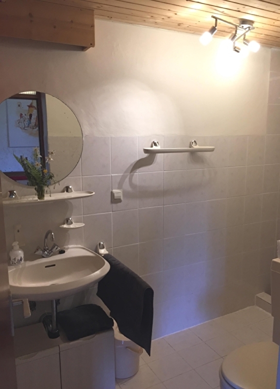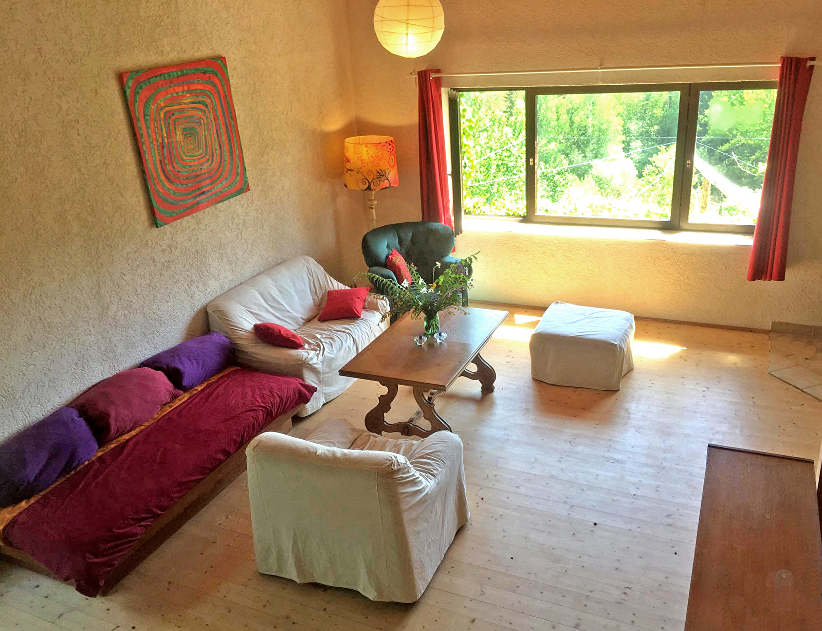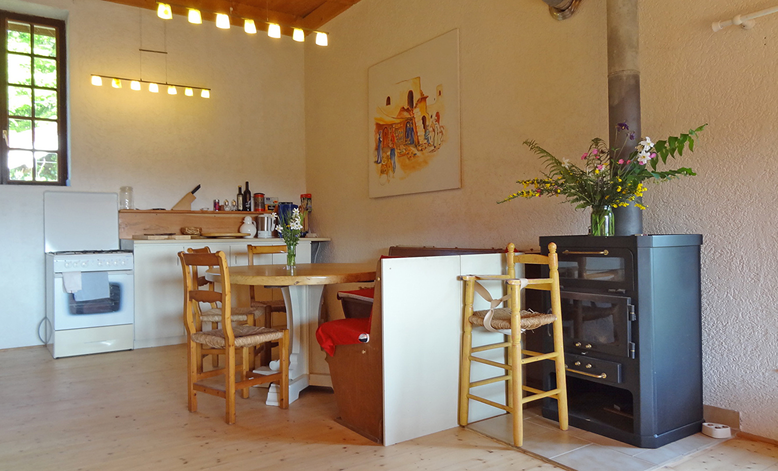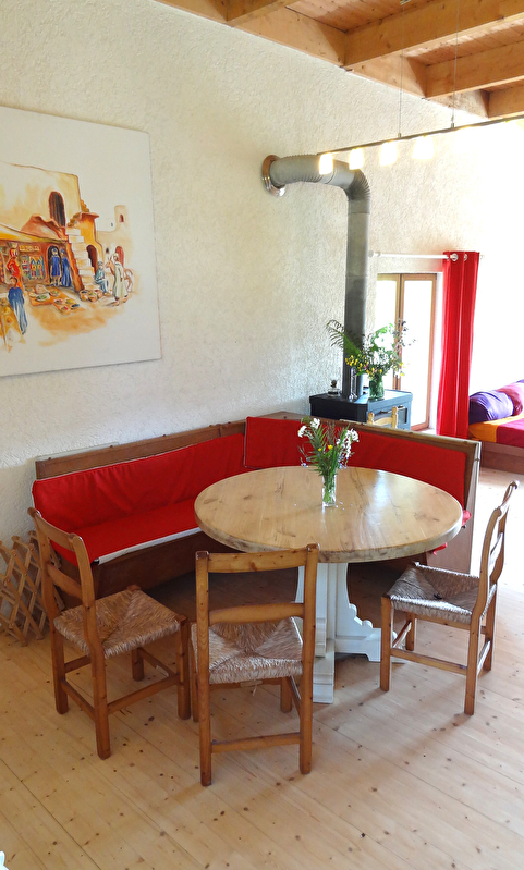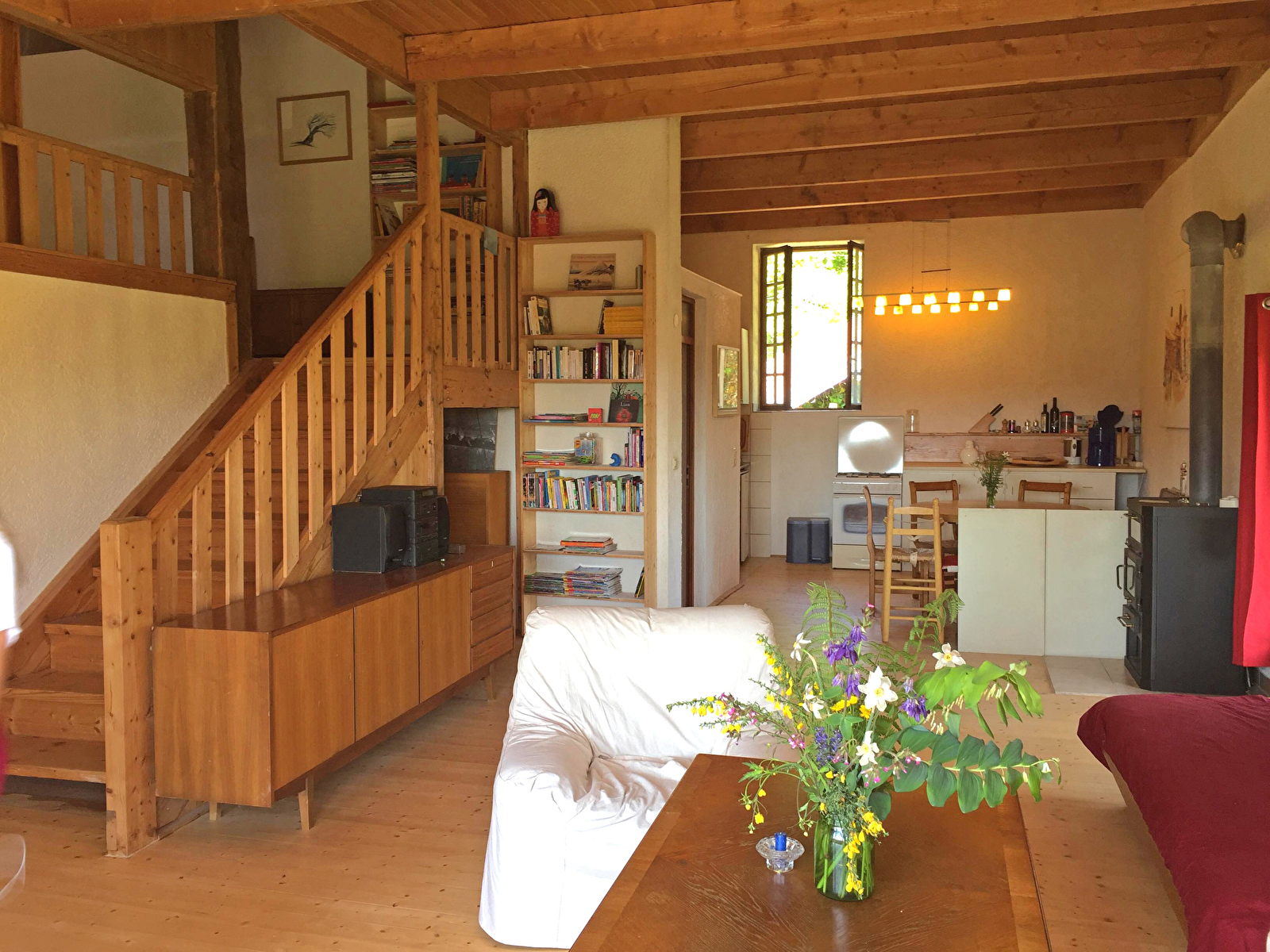 Vaste gîte lumineux à l'étage, il se compose d'un salon, d'une cuisine agencée en loft, de deux chambres et d'une salle de bain / toilettes.