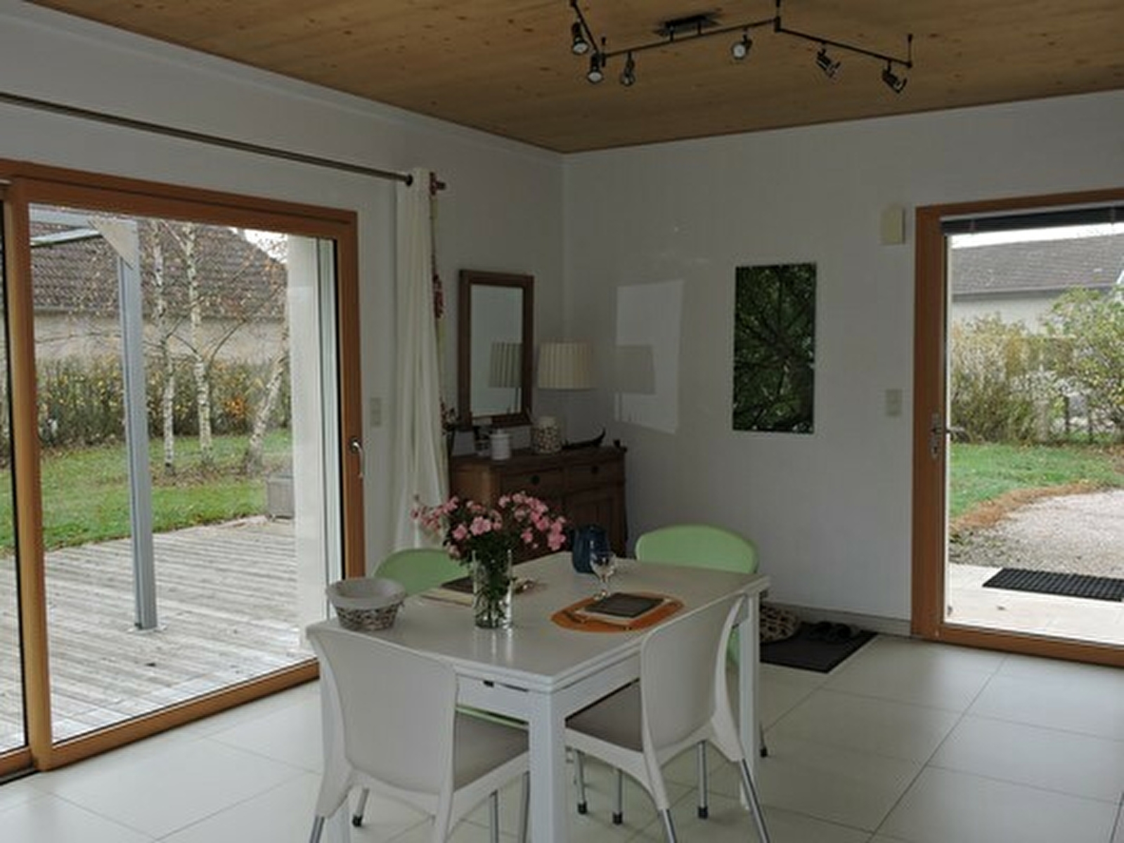 Maison individuelle de plain pied, ouverte sur l'extérieur par une grande baie vitrée; arborée et fleurie (en saison). Située dans une impasse très calme, accès aisé et rapide dans la grande Forêt de Chaux à pied ou à vélo.