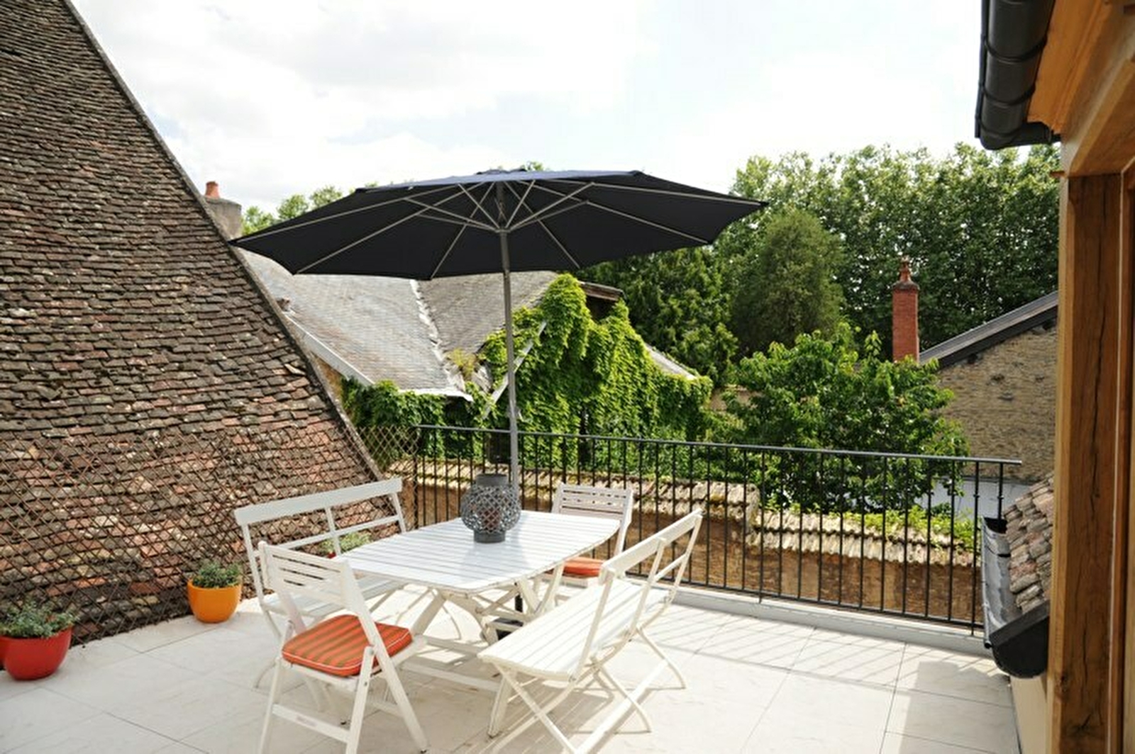 Meublé de tourisme classé 4* dans une maison du 17ème rénovée en 2010 au cœur historique de Beaune. Emplacement idéal pour découvrir la ville à pied. Entièrement meublé et équipé de manière moderne, grande terrasse très agréable de 25 m2 avec une vue sur les Hospices de Beaune à 200 m, caveau privatif.