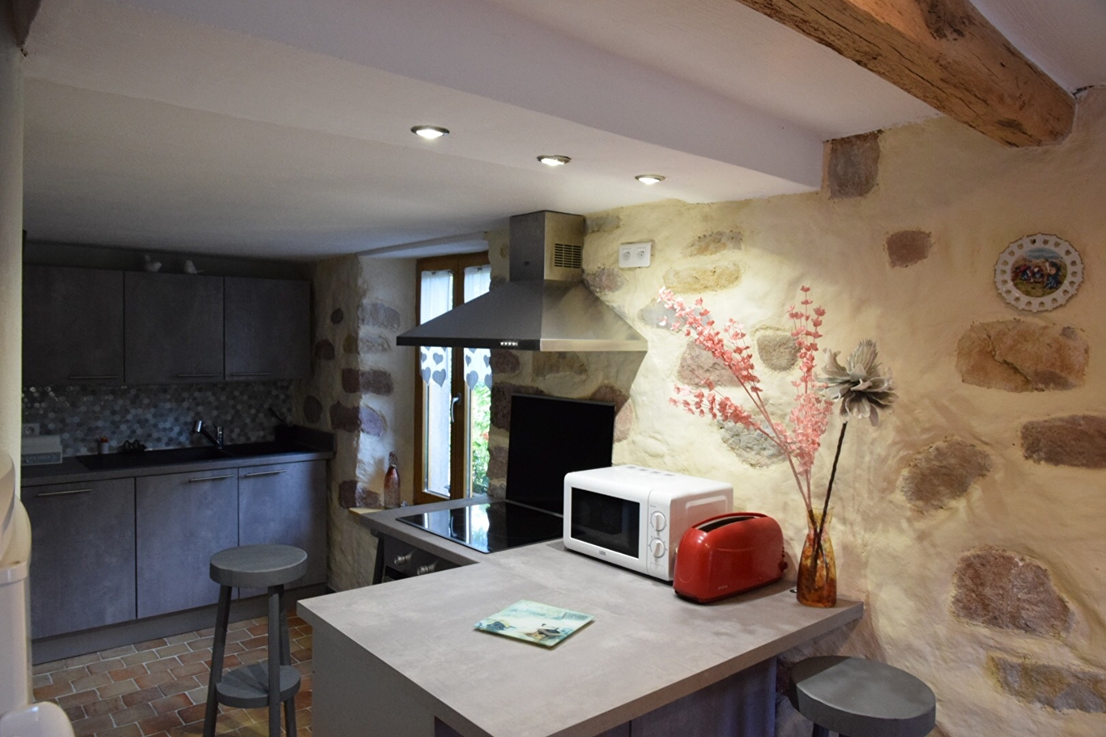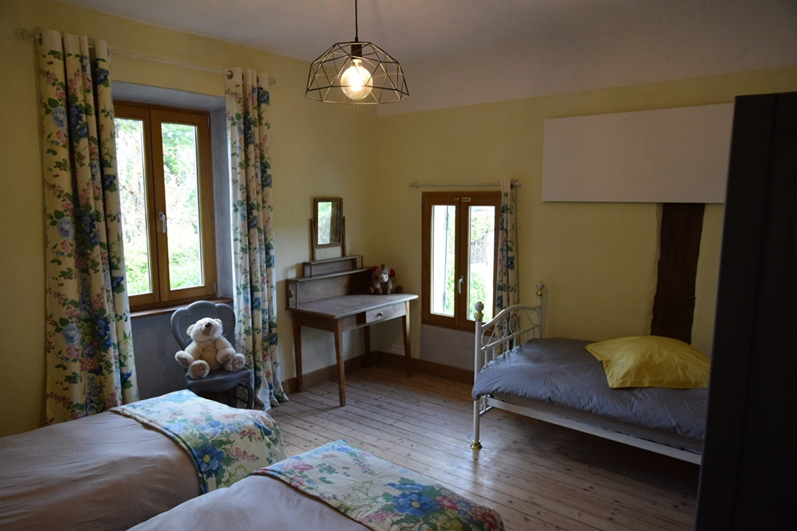 A l'étage : 2 chambres, l'une avec un grand lit, l'autre avec 2 lits jumeaux et un lit d’angle, une salle de bain, un WC indépendant.