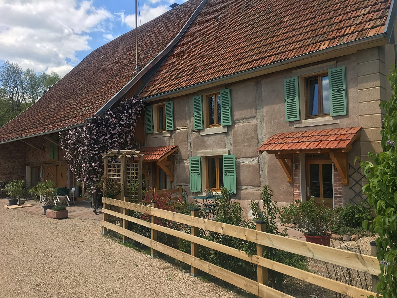 Gîte aménagé dans une ancienne ferme comtoise, entièrement rénové avec des matériaux naturels.