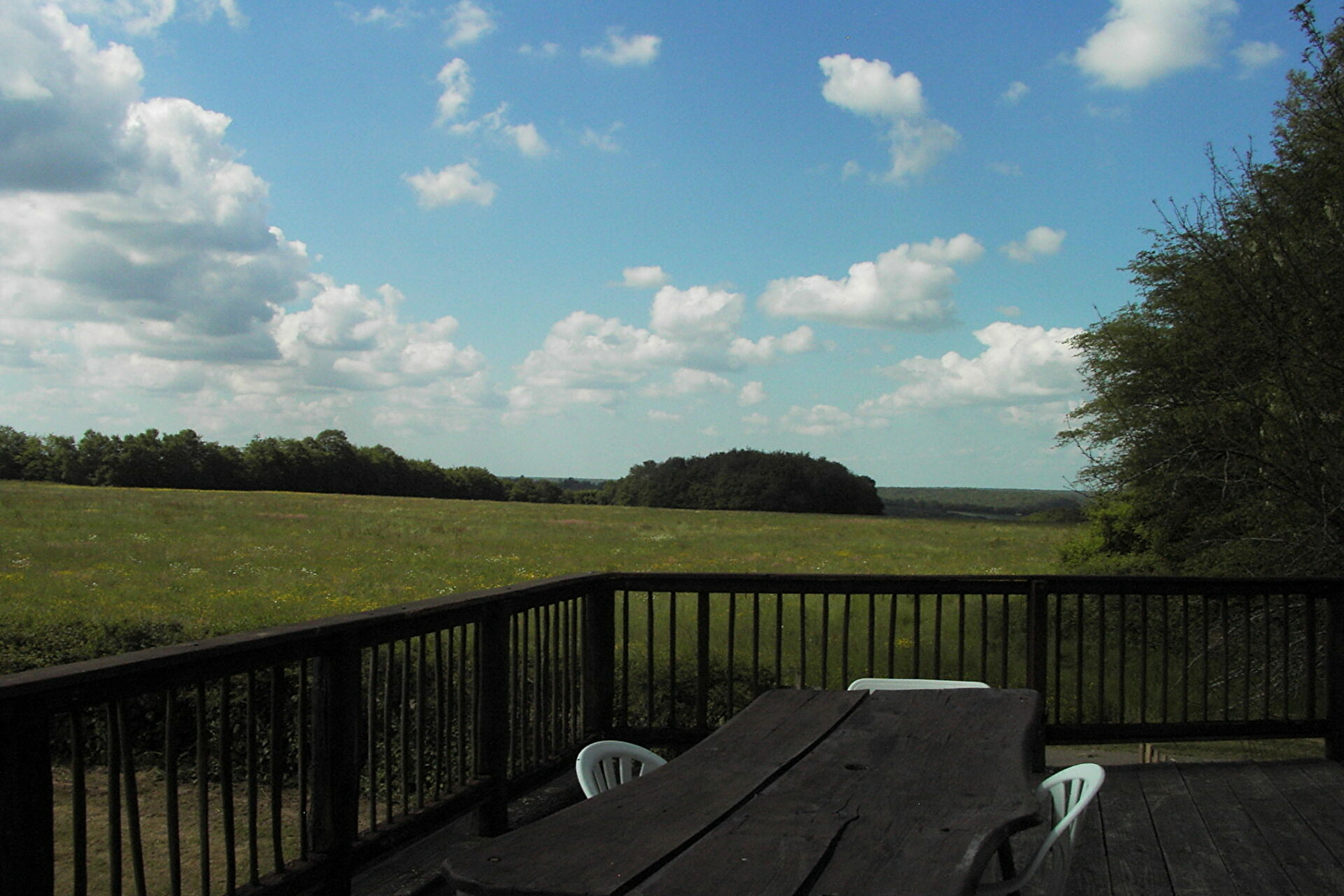 Vous disposez d'une grande terrasse . Votre cheval peut etre logé en box sous vos pieds et dans les prés.
