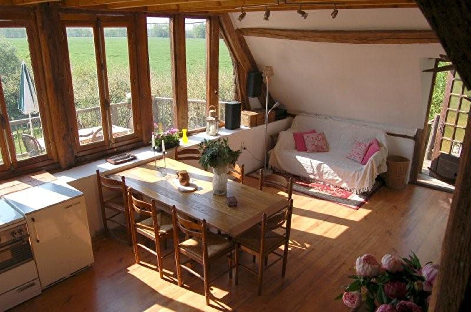 En Puisaye, petite région de bocages et immenses forêts du sud de l'Yonne, cette ancienne ferme traditionnelle de la fin du XVIIIème siècle située sur la commune de Saint Fargeau à 5000m du village, vous offre un gîte construit dans les magnifiques charpentes à colombages de ses écuries . Habitation pour 1 à 6 personnes. L'idéal étant pour 4 en tout confort sans utiliser le couchage d'appoint du salon mezzanine.