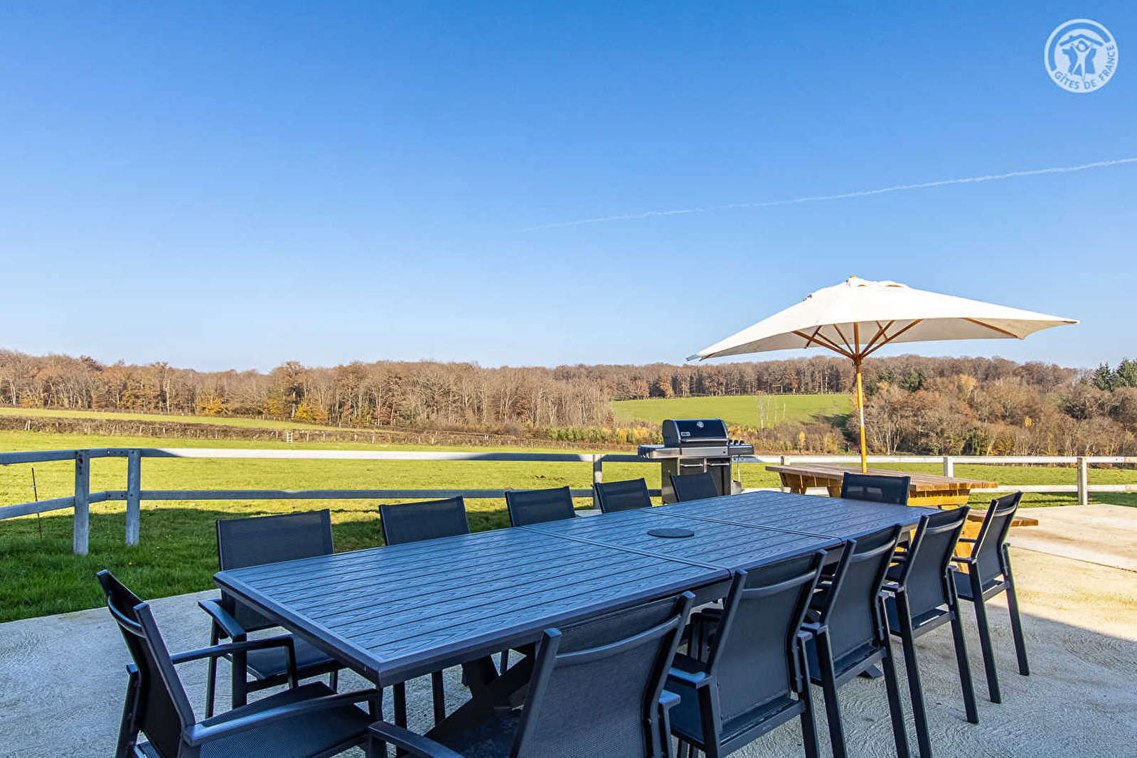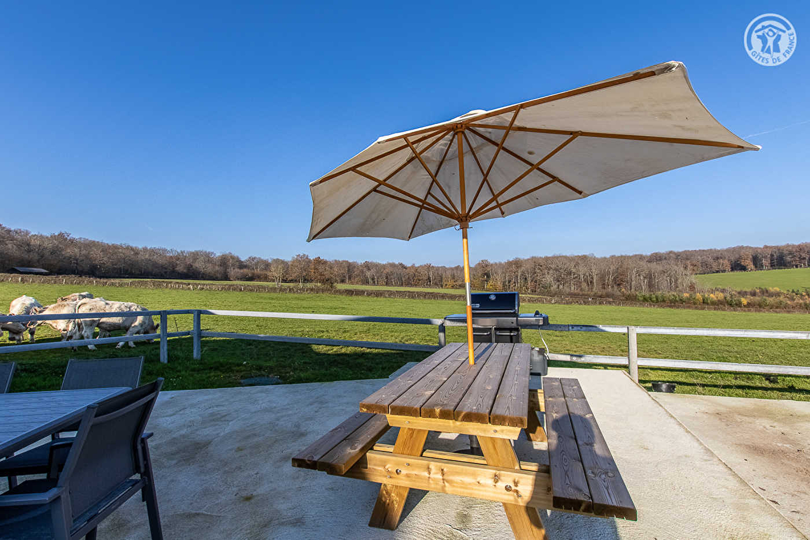 Nadine & Eric vous accueillent dans une ancienne dépendance agricole réhabilitée avec soins en confortable villégiature, blottie sur leur exploitation familiale d'élevage charolais en agriculture biologique de 40 ha (vaches parquées aux alentours ou en étable), abritant un accueil de chevaux (« écurie de propriétaires ») & un grand poulailler (visite possible des animaux pour le plaisir des enfants avec accord propriétaire). Calme absolu en pleine campagne brionnaise, au sein d'un superbe écrin champêtre & naturel préservé de bocage & prairies, lové au creux d'une grande clairière sise en plein cœur d'une vaste forêt classée ZNIEFF pour la diversité de sa faune & flore (parsemée de sentiers pédestres balisés / possibilité d'observer les animaux sauvages), à 4 km du petit village typique de la Motte-Saint-Jean niché sur les rives de la Loire (site naturel protégé en « Zone Natura 2000 » pour son exceptionnel biotope végétal & animal, axe de migration, reproduction & nidification pour de nombreuses espèces dont certaines très rares). Cadre & site enchanteurs, totalement reposant, littéral petit paradis pour petits & grands. Spacieux gîte de bon confort. Exceptionnelle pièce de vie de 100m² dotée d'un baby-foot & vidéo projecteur (écran de cinéma). Cachet campagnard contemporain à l'ambiance zen & douce. Vaste terrasse panoramique ouverte sur la prairie voisine (table ping-pong), offrant une agréable vue dégagée sur la campagne. Accès à tout le domaine.