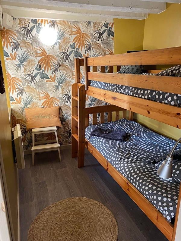 Au coeur d'un des plus beaux villages de France, jolie maison ancienne indépendante entièrement rénovée avec goût. Rez-de-chaussée : salon-salle à manger avec cuisine équipée ouverte. On accède par quelques marches aux 2 chambres, 1 lit 160 et 2 lits 90 superposés et à la salle d'eau avec WC. Décoration chic et soignée. Terrasse abritée privative. Parking commun avec un autre gîte (une place de stationnement par gîte). Canapé convertible dans le salon offrant 2 couchages supplémentaires.
