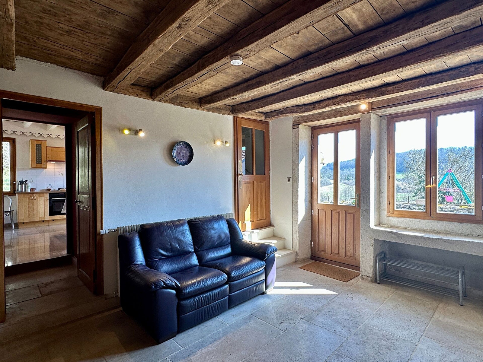 Le second gîte à quelques mètre à pied, est composé en rez de chaussée d'une pièce de vie : espace kitchenette avec évier, plaques de cuisson (2 feux gaz), frigo, micro-ondes et plateau de courtoisie (bouilloire et cafetière). Cheminée (bois sur demande : 5€/panier). Spacieuse de bains avec WC et bidet. Grande chambre de plain pied (lit 160cm). A l'étage, en mezzanine : 3 lits simples et une salle d'eau attenante avec WC.