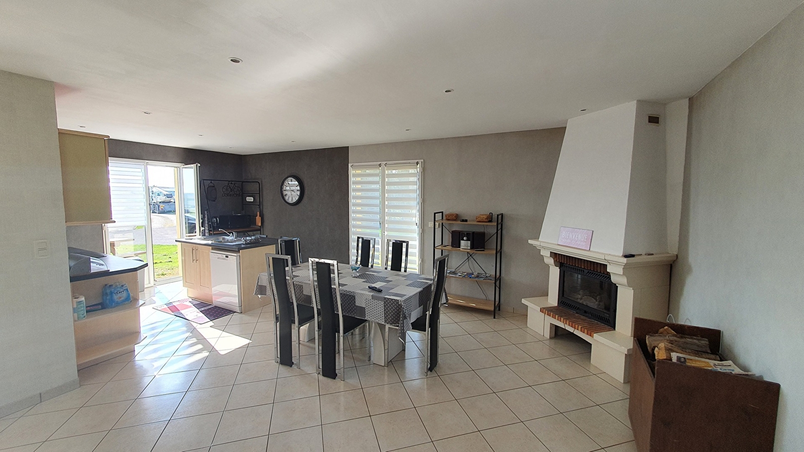 Maison de plain-pied avec une capacité de 6 personnes comprenant 3 chambres, une grande pièce à vivre avec cuisine aménagée et équipée. Garage attenant à la maison. Chauffage et climatisation. Grand espace vert.