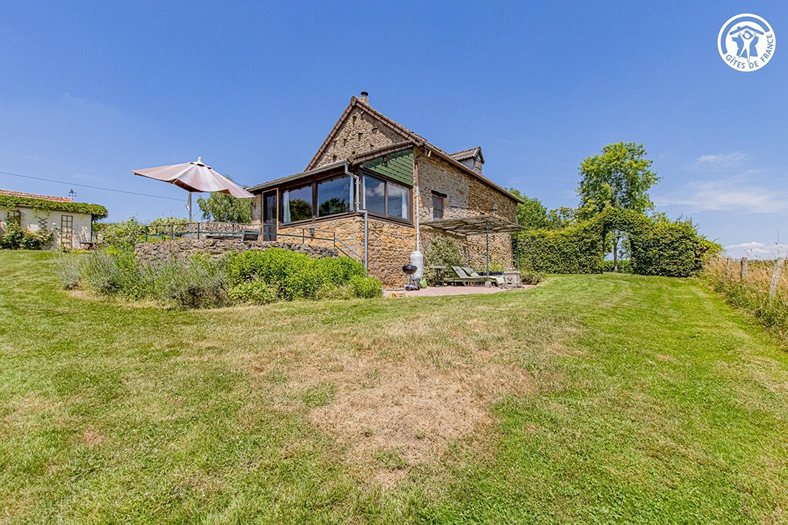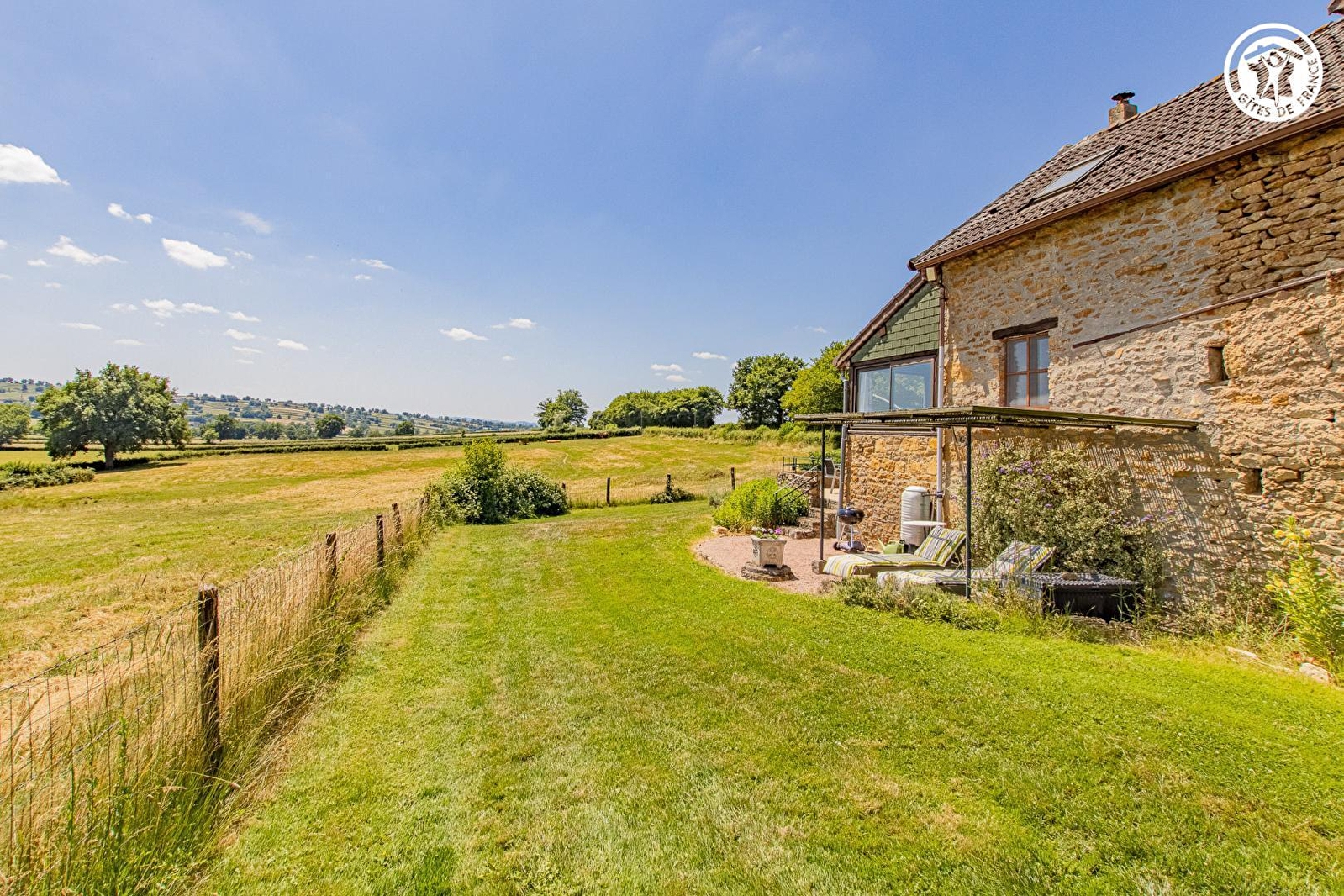 Julie & Patrick vous ouvrent les portes d'une authentique ferme traditionnelle de caractère du XIXème siècle soigneusement restaurée blottie en "vigie" à flanc d'une douce colline exposée, dominant en "belvédère panoramique" un vaste plateau de bucolique bocage boisé, aux confins d'un petit hameau rural agricole & résidentiel. Calme & absolue tranquillité en pleine campagne charolaise vallonnée, lové en impasse ("cul de sac") en lisière de pâtures (accueillant en saisons des chevaux comme voisins privilégiés), au creux d'un sublime écrin préservé de nature & verdure. Véritable "mini paradis vert" 100% relaxant, offrant le privilège rare de pouvoir observer la faune sauvage (chevreuils, lièvres, renards, rapaces, lérots, divers oiseaux…). Littéral havre de paix & repos au cœur d'un cadre d'exception. Spacieux gîte de bon confort. Chaleureux cachet campagnard un brin "vintage", sublimé par l'âme dépaysante des lieux (linteaux & murs en pierres d'origine). Atypique pièce de vie panoramique, ultra lumineuse, ouverte sur la campagne environnante. Beaucoup de charme. Ambiance cosy & douillette. Large balcon-terrasse exposé riche d'une superbe vue dégagée. Agréable jardin "privatif" ouvert sur les prés, doté d'un espace détente & repos ombragé sous canisse, niché sur une magnifique propriété soigneusement paysagée (très fleurie, végétalisée & arborée) abritant un terrain de pétanque naturellement ombragé sous les arbres & une "mini mare". Somptueux panorama & paysages.