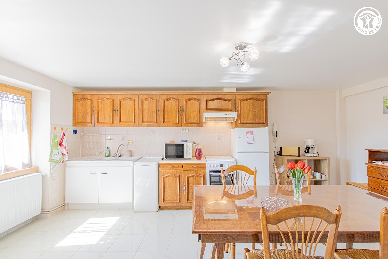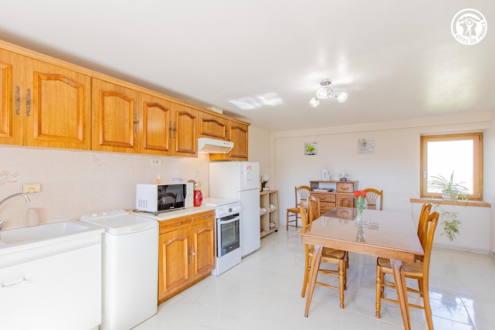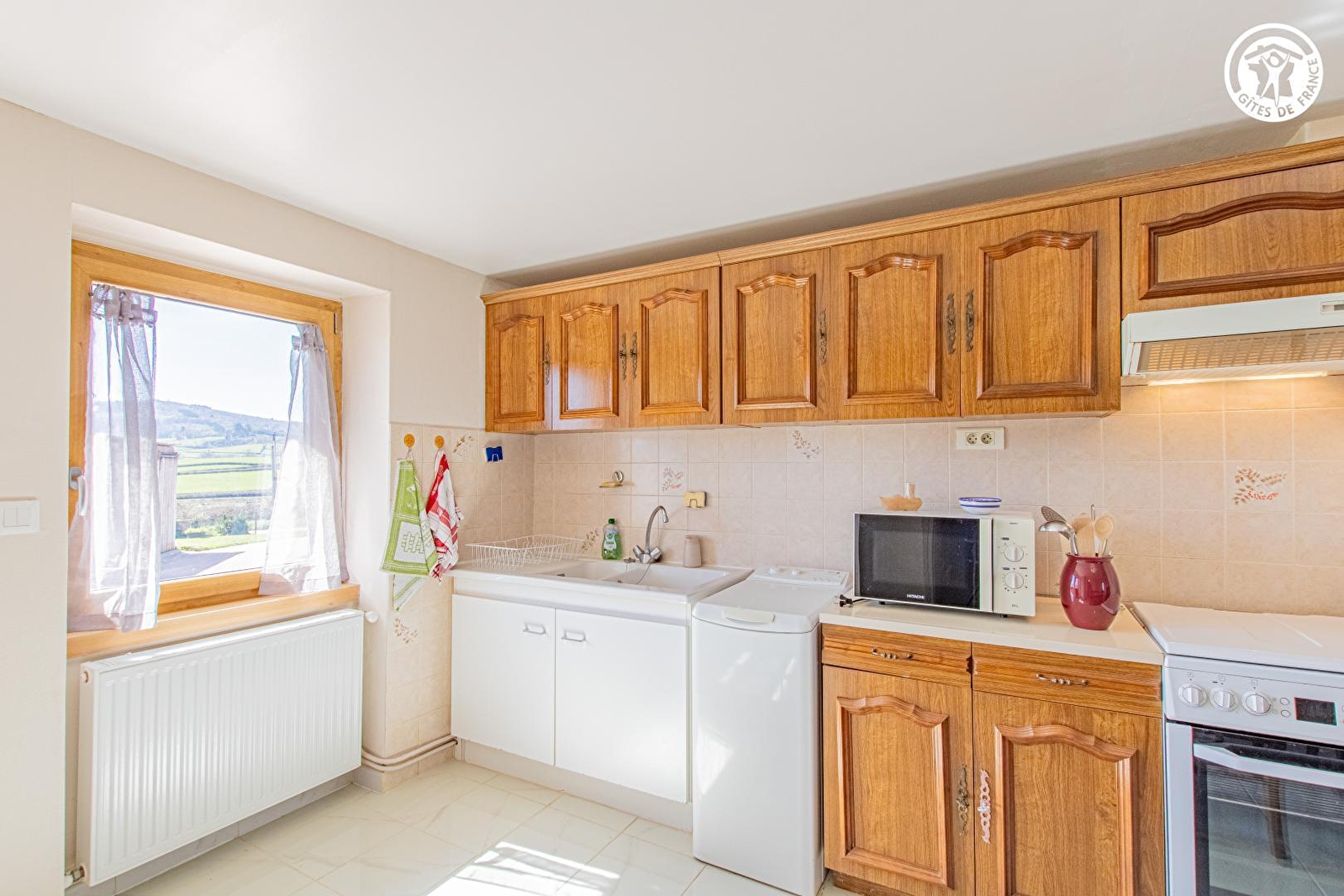 Tous deux agriculteurs retraités, Maryse & Jean-Marc vous accueillent au sein d'une authentique ferme traditionnelle du XIXème siècle, intégralement restaurée & revisitée en douce villégiature, blottie sur une petite exploitation agricole familiale d'élevage laitier exploitée par leur fils (en race "montbéliarde"). Calme & tranquillité niché en pleine campane clunisoise vallonnée (classée & protégé en "Zone Natura 2000" pour ses richesses faunistiques & floristiques), au cœur du magnifique bocage local, sous les crêtes boisées des toutes proches douces forêts sauvages, à deux pas d'une bucolique petite rivière poissonneuse. Splendide panorama & cadre paysagé, juché en "balcon" & "belvédère panoramique" à flanc de colline sur un coteau sud exposé, au sein d'un hameau rural "dispersé" (agricole & résidentiel) dominant le paisible petit village de Buffières, pittoresque bourg parfaitement sauvegardé riche d'une élégante église romane édifiée au XIIème siècle, lové sur les contreforts de la vaste forêt domaniale des Trois Monts (littéral "poumon vert" du territoire à parcourir lors de reposantes balades à pied ou VTT). Décor champêtre & naturel préservé de carte postale, 100% relaxant & apaisant. Gîte de bon confort. Dépaysant chaleureux cachet campagnard mixant touches contemporaines & charme "vintage". Agréable jardinet sis en bordure des prés, ouvert sur la vaste cour de la propriété. Balcon exposé & abrité offrant une splendide vue dégagée sur la campagne environnante.