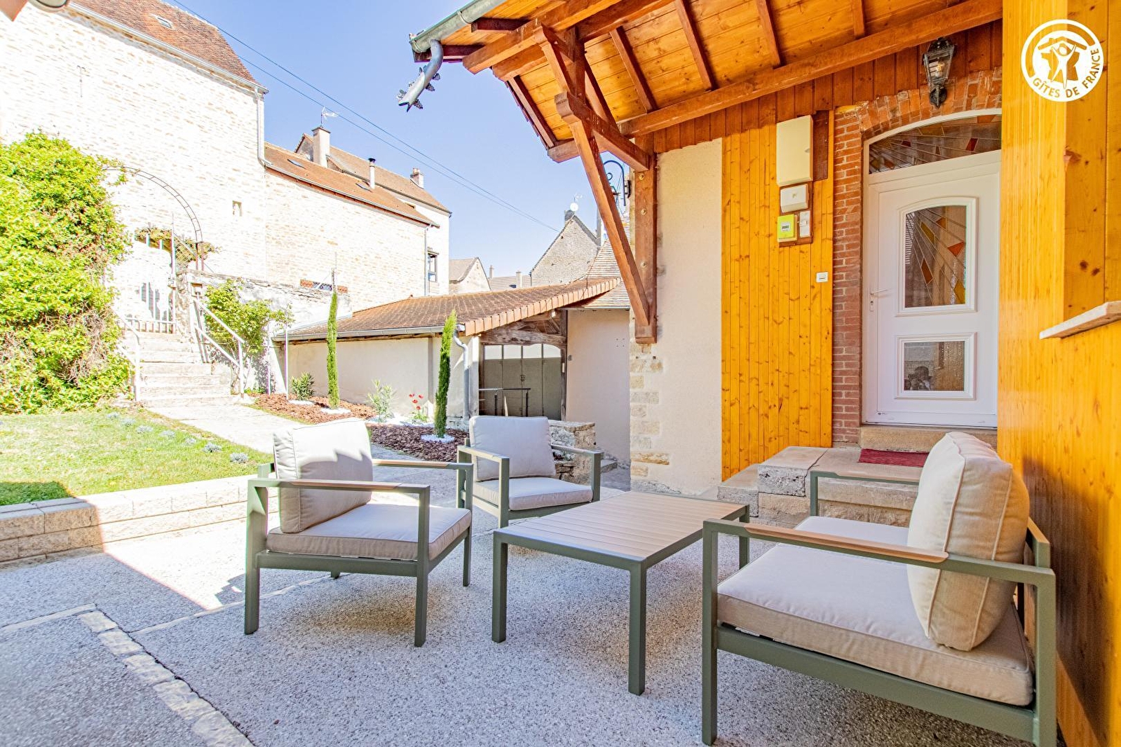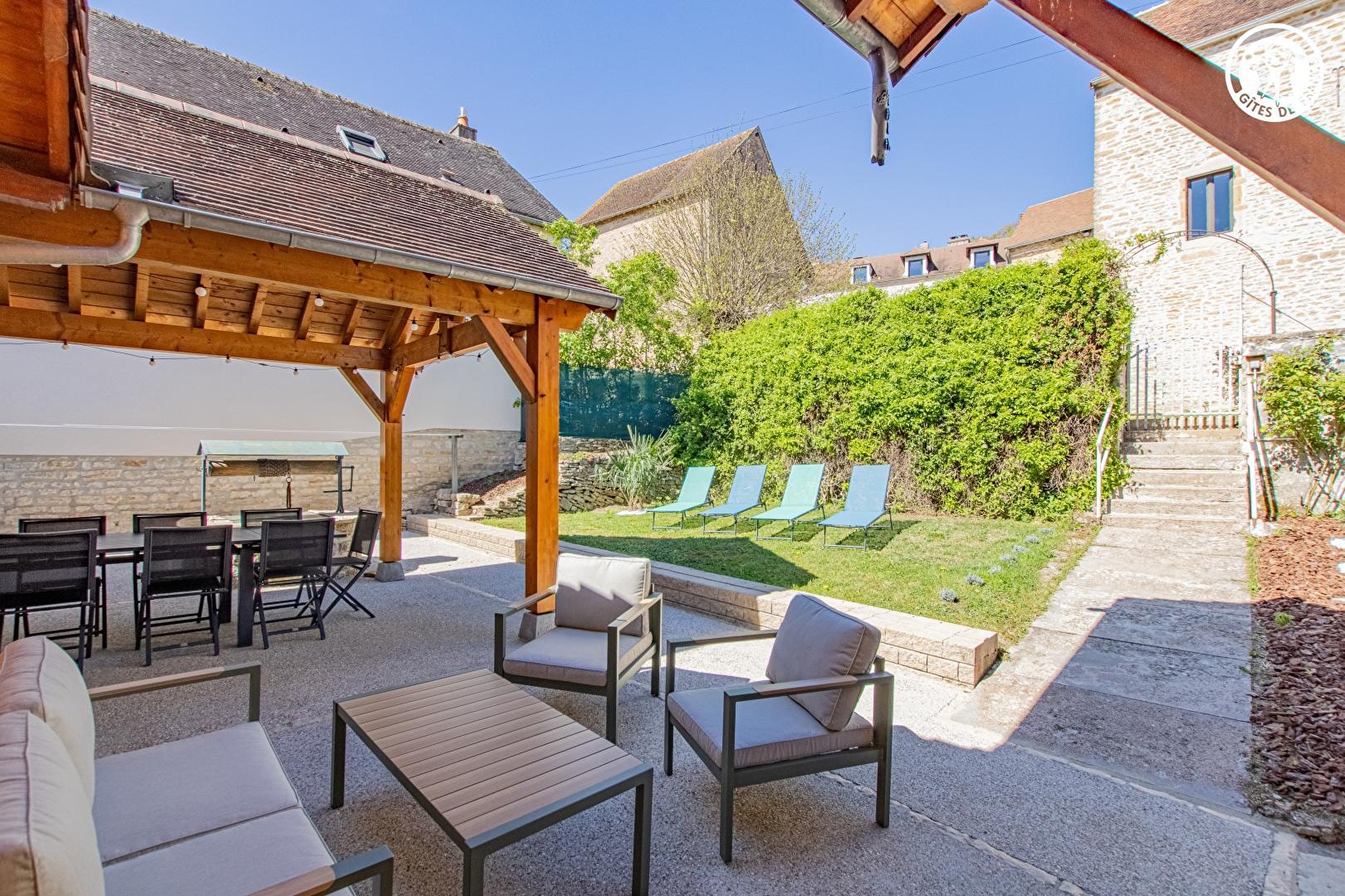 Viticulteurs en AOC local "Montagny 1er cru", Christophe & Fabrice (frères), vous ouvrent les portes d'une charmante authentique demeure de vignerons du XIXe intégralement restaurée, adossée à flanc de colline, en "balcon" & "belvédère panoramique", sur un coteau sud-est exposé. Calme & tranquillité, niché en bordure de ruelle & lisière d'une mini prairie, à deux pas des vignes, au cœur d'un paisible & pittoresque petit village typique parfaitement sauvegardé des Côtes Chalonnaises, lové en amphithéâtre sous de douces crêtes boisées au creux d'un sublime vallon de vignobles, voisinant champs & bocages, à proximité d'une belle forêt sauvage, magnifique écrin champêtre & naturel préservé, protégé en "Zone Natura 2000" & ZNIEFF pour ses richesses faunistiques & floristiques. Décor viticole de "carte postal", 100% reposant & relaxant. Superbe panorama & paysages. Gîte de très bon confort riche d'une atypique & dépaysante architecture intérieure. Chaleureux cachet campagnard aux accents contemporain. Agréable intimiste jardin clos de 200m², blotti en "arrière-cour" à l'abri des regards, comprenant une vaste terrasse abritée comme exposée (ombragée l'été). Balcon panoramique offrant une splendide vue dégagée sur les vignobles & le Mont-Blanc, s'affichant en toile de fond par temps clair.