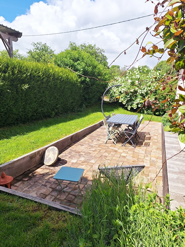 Avec un terrain de 200m² (pelouse et terrasse) et dépendances.
