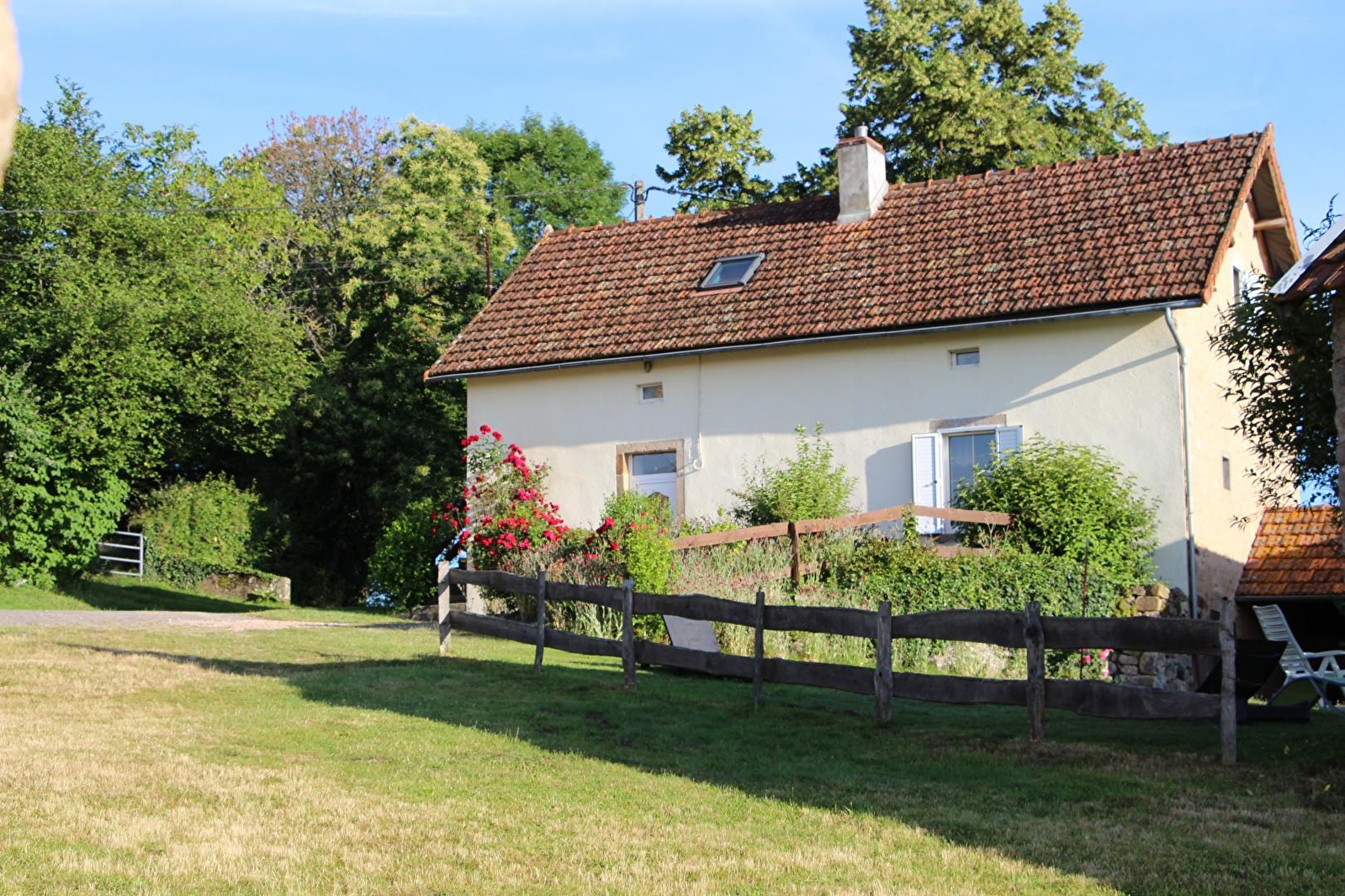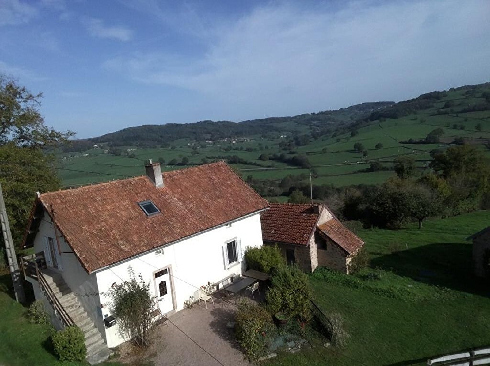Située à mi-distance d'Autun et du Creusot, dans un hameau calme surplombant la vallée, cette ancienne ferme avec maison indépendante offre une vue superbe sur la campagne, et assure une tranquillité absolue avec 10 hectares de terrain privatifs tout autour.
