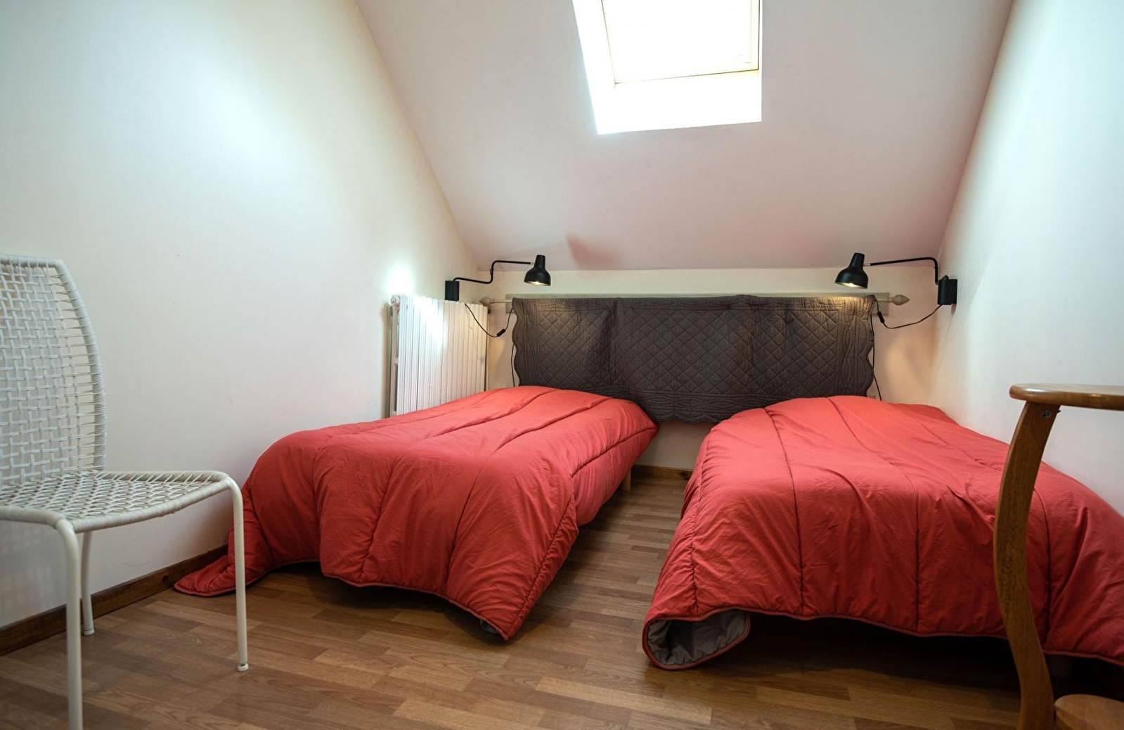 Étage : 3 chambres (1 lit 140cm et 4 lits 90cm), salle d'eau (douche) avec WC. Décoration soignée et chaleureuse. Chauffage central fuel. Balançoire, Table de ping-pong à disposition. Sentiers au départ du gîte (GR131).