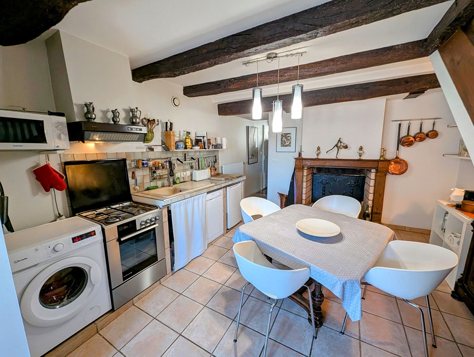 Au rez-de-chaussée vous trouverez la salle à manger et salon avec poêle à bois. Une cuisine équipée avec lave-vaisselle, four et tout le nécessaire pour cuisiner. Salle d'eau et toilettes disponibles également au rez-de-chaussée.