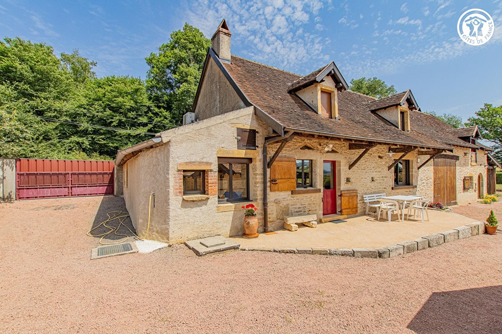 Passionnés de voitures anciennes (ayant en partie inspiré la "déco" du gîte), Nicole & Paul vous accueillent au sein d'une élégante authentique fermette traditionnelle du XIXe soigneusement restaurée, nichée au calme en pleine campagne charolaise préservée (sur un site protégé en ZNIEFF pour ses richesses faunistiques & faunistiques), aux confins de l'un des plus petits villages de Saône-et-Loire. Absolue tranquillité, lové en lisière de prairies, à l'orée d'une belle forêt sauvage, au creux du magnifique bocage local (accueillent les paisibles & célèbres vaches charolaises en saison). Apaisant écrin préservé de nature & verdure. Véritable havre de paix & repos offrant le privilège rare de pouvoir observer la faune sauvage (chevreuils, lièvres, renards, rapaces, lérots, nombreux oiseaux…). Gîte de très bon confort. Ultra spacieux. Vaste pièce de vie. Chaleureux cachet campagnard aux accents contemporains sublimé par les riches traces du bâti d'origine (manteau de cheminée, linteaux, niches & piliers en pierres, tomettes, poutres…). Énormément de charme & caractère. Cosy & douillet. Terrasse exposée que complète une vaste terrasse abritée. Très agréable propriété de 1 ha soigneusement engazonnée, végétalisée, fleurie & arborée (cerisiers, poirier, pêchers, mirabellier… / cueillette possible), abritant un insolite petit bassin (avec grenouilles & poissons rouges) comme un terrain de pétanque "naturel" sur cour.