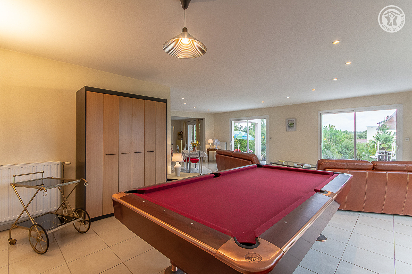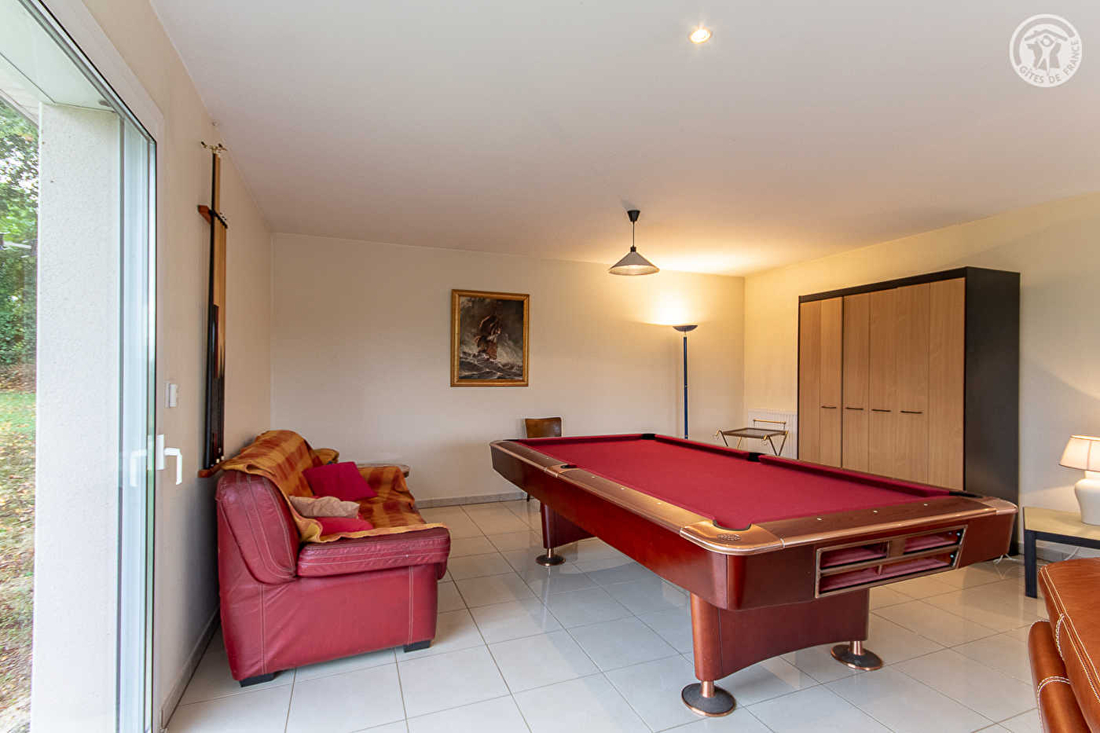 Vaste demeure abritant un gîte tout confort, dans un village calme et tranquille niché en pleine campagne en lisière de champs et forêts en toute proximité de nombreux étangs et rivières poissonneux pour la pêche. Gîte de très bon confort. Ultra spacieux. Très vaste et lumineuse pièce de vie aux dimensions exceptionnelles disposant d'un billard. Chaleureux cachet campagnard contemporain. Large terrasse abritée et ouverte. Agréable large jardin soigneusement aménagé (en partie pentu).