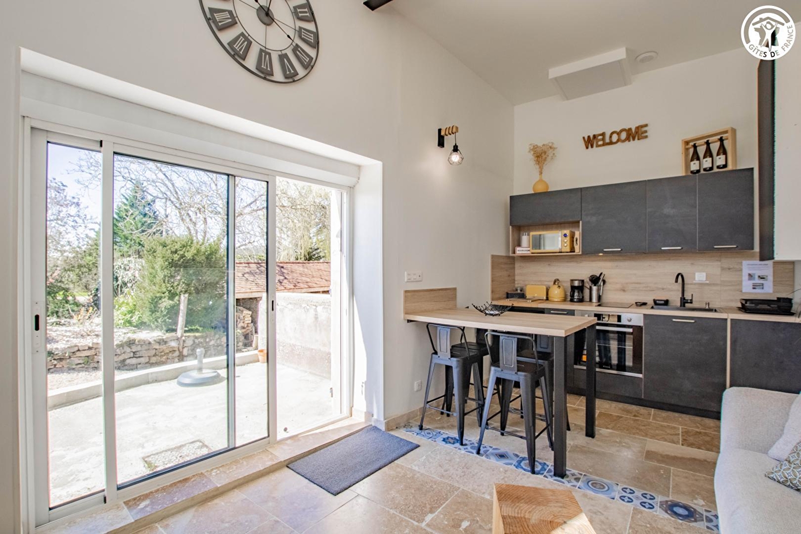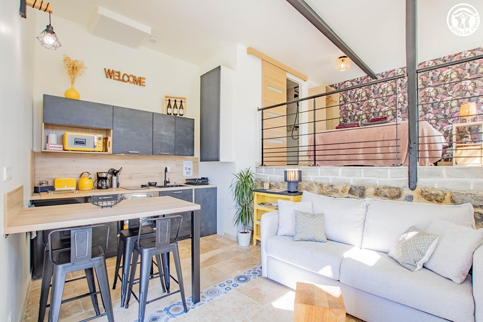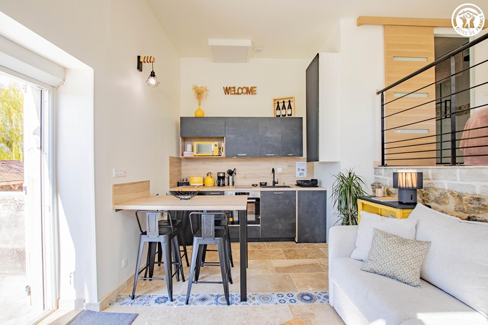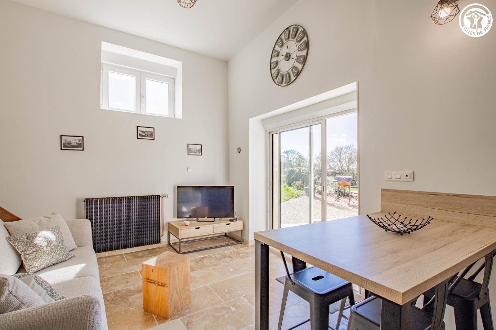 Composition : Gîte mitoyen à l'habitation des propriétaires (indépendance totale). Wifi (fibre). Chauffage central bois. Vaste studio en duplex. Rdc surélevé (accès de plain-pied par petit chemin montant depuis la cour) : espace séjour-cuisine-salon (canapé convertible "rapido" 2 p. 140x190cm). 1er étage (5 marches) : espace chambre sur "mezzanine" (lit 2 p. 160x200cm), salle d'eau (douche/Wc). Terrasse + parking privés. Jardin en commun avec propriétaires avec piscine chauffée (8x4m), trampoline et balançoire. Commodités 8.5 km. Supermarché 9 km.