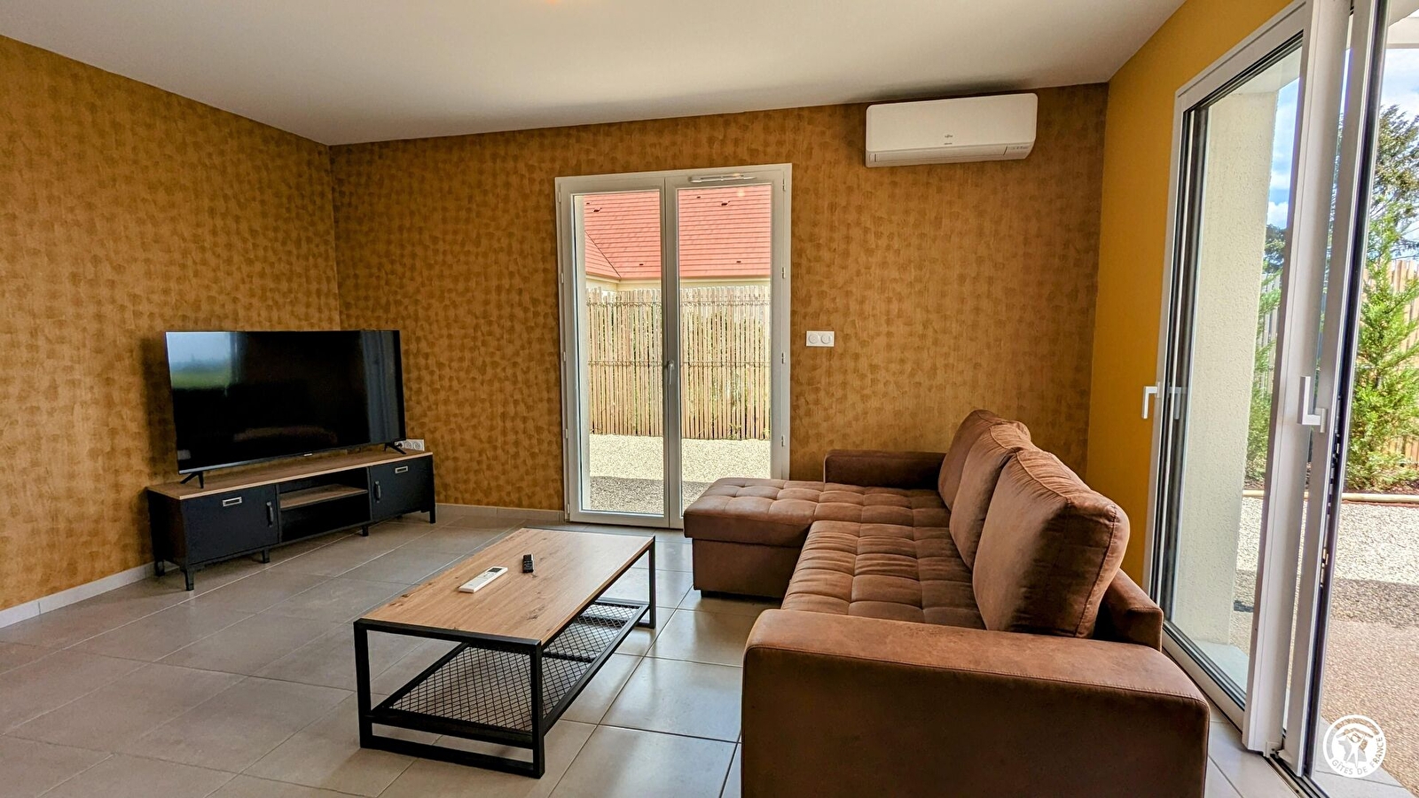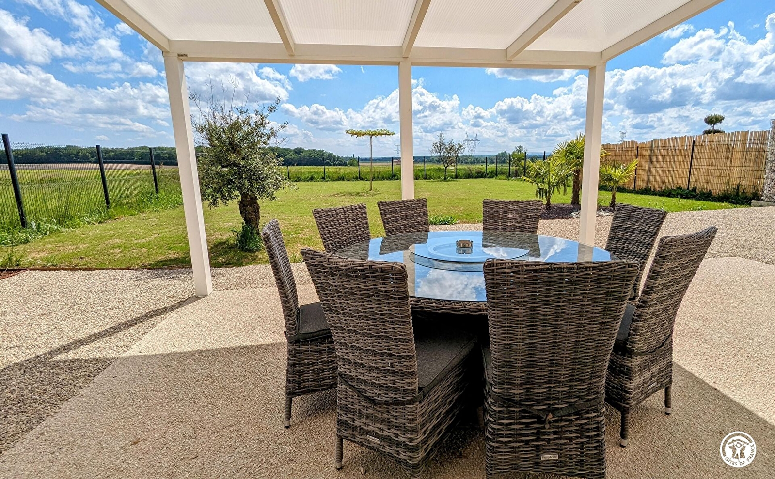3 chambres avec chacune 1 lit de 140 cm et 1 dressing. 1 salle de bain avec douche et baignoire. 1 WC indépendant. Climatisation réversible. Belle terrasse avec pergola donnant sur un jardin entièrement clos et sans vis-sà-vis. Jolie vue dégagée sur la campagne. Salon de jardin, barbecue. Parking privatif fermé (portail électrique).