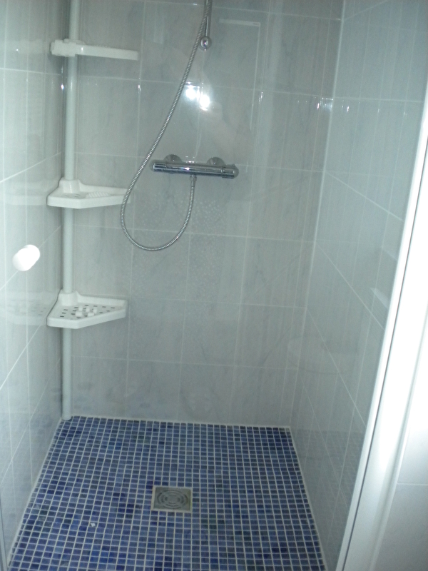 Au rez-de-chaussée, se trouvent la cuisine toute aménagée, puis le WC indépendant et une salle de bains avec douche à l'italienne, la salle de séjour et salon avec canapé et fauteuils et une chambre avec un lit de 140.