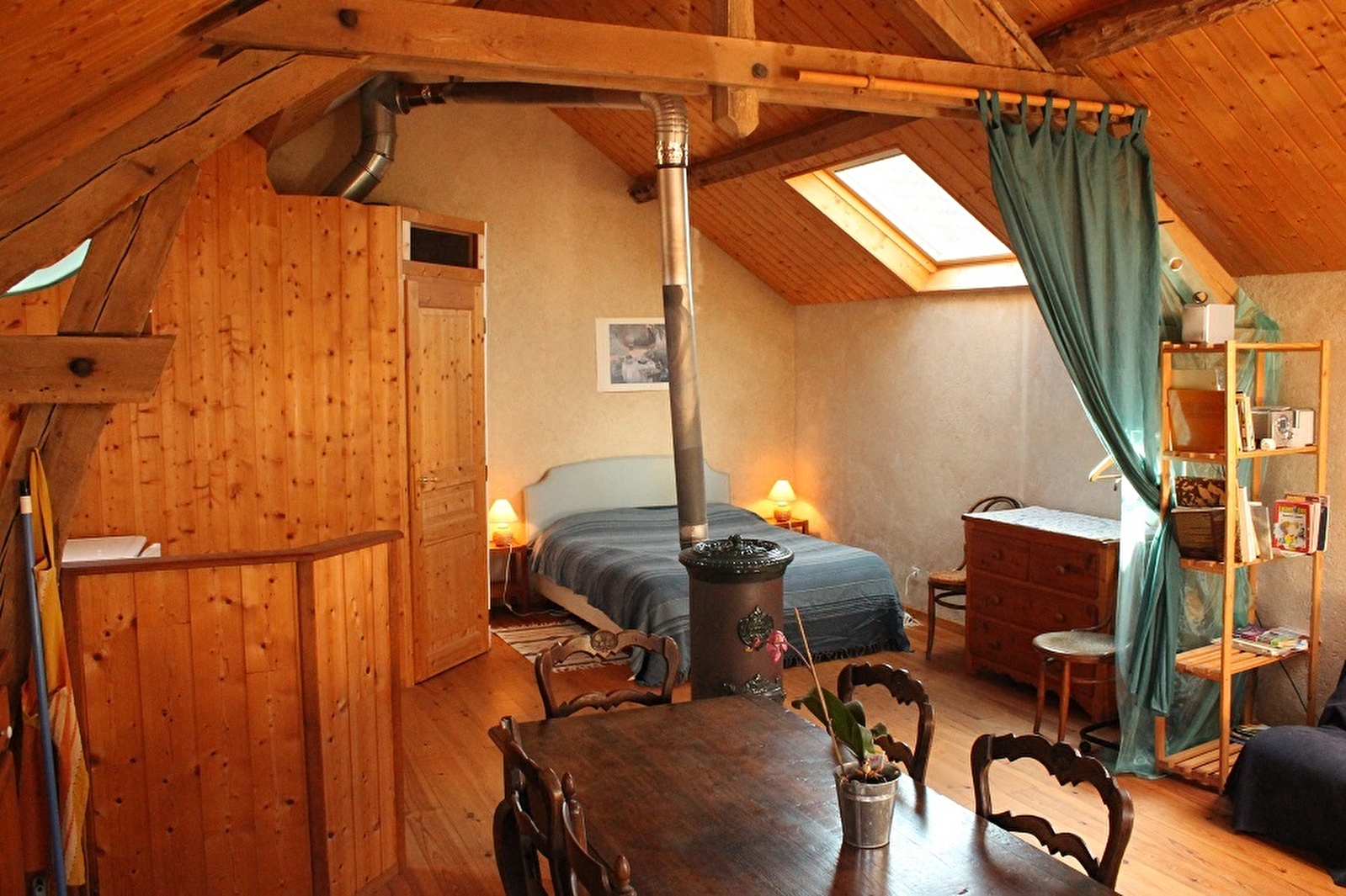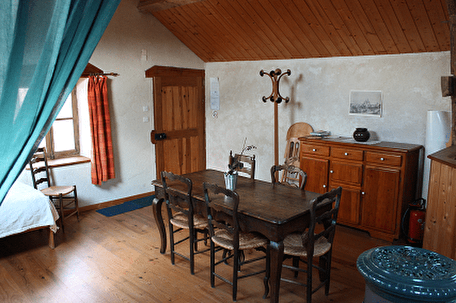 Le gîte est mitoyen de notre maison et totalement indépendant. Cette ancienne grange rénovée avec des matériaux écologiques offre un charme simple et paisible.