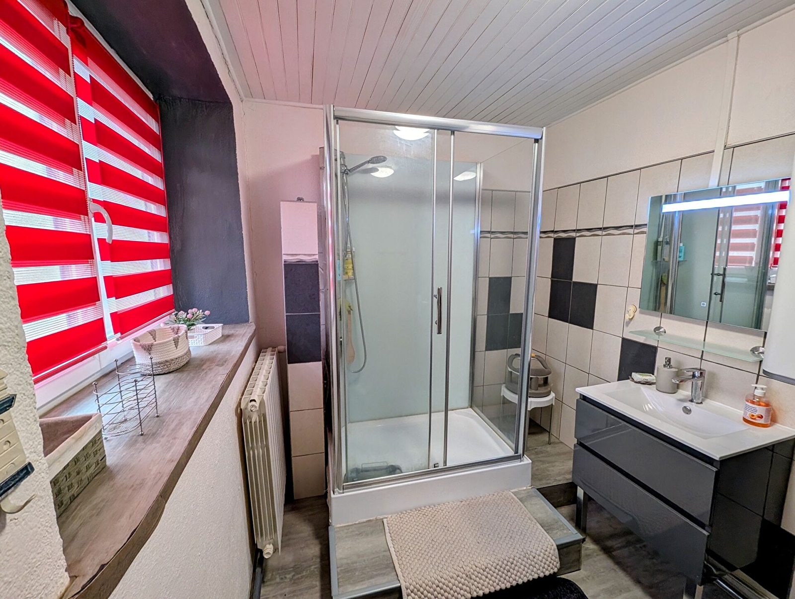 – Salle de bain équipée avec eau chaude et sèche-cheveux.