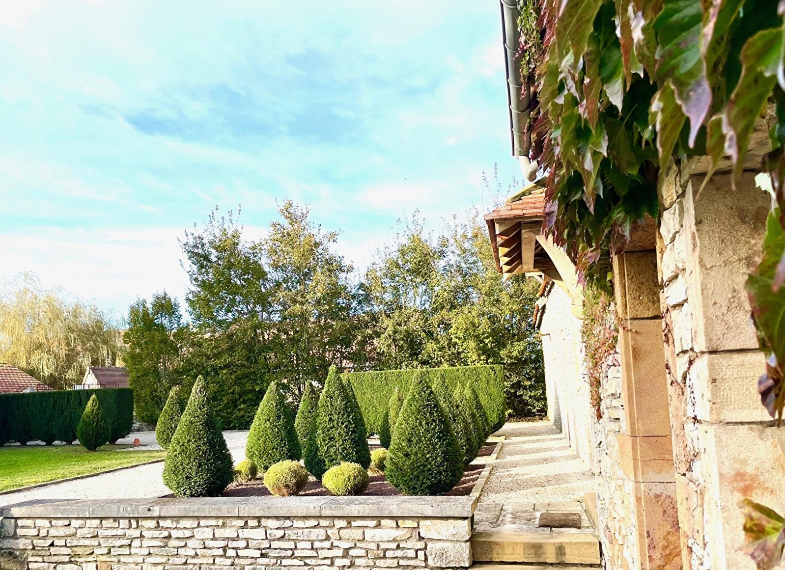Jacques & Patricia vous ouvrent les portes d'une élégante authentique bâtisse médiévale de caractère, intégralement restaurée dans les règles de l'art, blottie sur une propriété chargée de grande histoire (jadis "dépendance" du prieuré & "doyenné" qui occupait les lieux / domaine agricole lié à l'abbaye de Cluny), attenante aux vestiges de l'emblématique & majestueuse église romane fortifiée de Saint-Hippolyte datant du XIe, l'une des toutes premières de ce type construite en Bourgogne ("Site Clunisien" classé MH, "candidate" en cours de classement au patrimoine mondial de l'UNESCO), édifice littéralement exceptionnel & véritable joyau patrimonial. Au calme, en bordure de ruelle, au coeur d'un pittoresque petit hameau rural résidentiel, niché en pleine campagne clunisoise vallonnée au creux de la verdoyante vallée de la Guye (& sa rivière poissonneuse), sublime écrin paysagé protégé en Zone Natura 2000 & ZNIEFF pour ses richesses faunistiques & floristiques (dont le proche site des Monts & ses "pelouses calcaires" typiques de Bourgogne). Gîte de grand confort. Ultra spacieux. Vaste pièce de vie panoramique baignée de lumière. Chaleureux cachet "bourgeois" d'esprit "campagne chic" sublimé par l'âme du bâti d'origine (conservation des murs en pierres, poutres & linteaux en bois, manteau de cheminée en pierre, chevrons…). Ambiance cossue & raffinée. Énormément de charme & de caractère. Agréable jardin clos (600m²) soigneusement paysagé, doté d'une belle terrasse exposée & d'un terrain de pétanque "naturel" (cour).