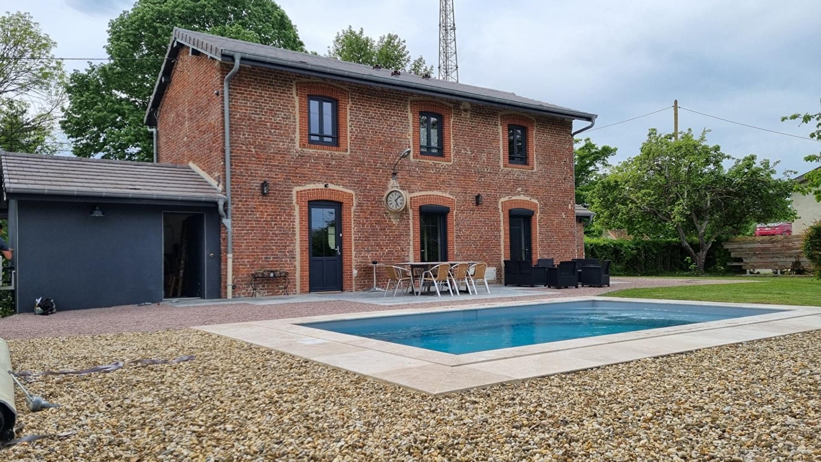 Inspirés par la douce magie du site et tombés littéralement amoureux des lieux, Céline & Cyril vous ouvrent les portes d'une très rare authentique gare ferroviaire du village du 19ème siècle (ancienne gare du bourg dont subsistent de nombreuses traces architecturales soigneusement préservées, que vous aurez loisir de découvrir sur place), élégante demeure industrielle de caractère pétrie d'histoire, intégralement restaurée dans les règles de l'art & revisitée en ultra confortable villégiature. Au sein d'un hameau résidentiel jouxtant le cœur d'un charmant petit village typique & commerçant, blotti en pleine campagne bressane au creux d'un apaisant cadre rural préservé, alternant champs & prairies verdoyantes, bucoliques étangs et belles forêts sauvages (accessibles à deux pas). Spacieux gîte de grand standing. Ravissant cachet résolument contemporain un brin « rétro », mixant touches vintages & industrielles, sublimé par une « déco » hyper soignée basée sur la thématique du train & du chemin de fer, ludique « fil conducteur » en hommage au très riche passé du site, dans un esprit « carnet de voyage ». Énormément de charme, style & caractère. Ambiance ultra cosy & cocooning. Très belles prestations. Équipement complet de grande qualité. Large terrasse (exposée et ombragée, selon) ouverte sur un intimiste et agréable jardin engazonné & arboré de 1400m² comprenant une belle piscine chauffée (3.5x6m) et un terrain de pétanque parfaitement aménagé.