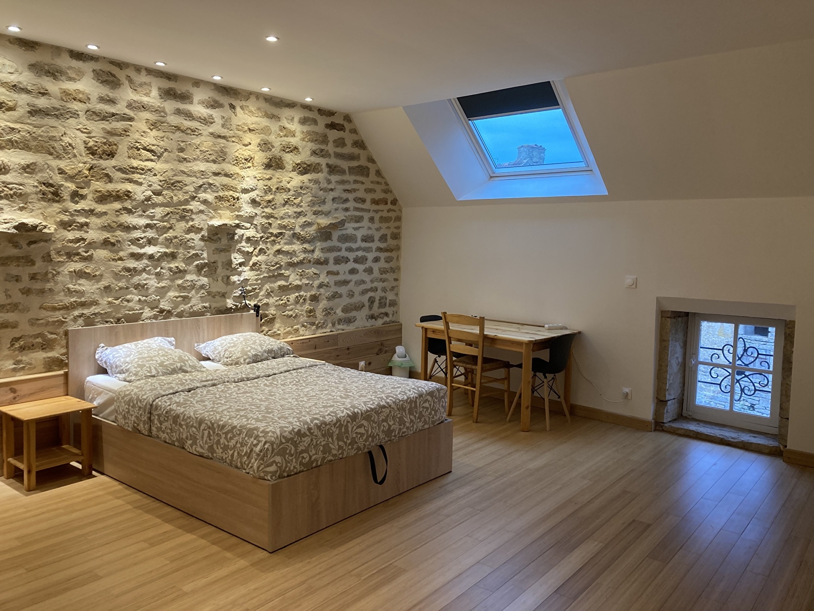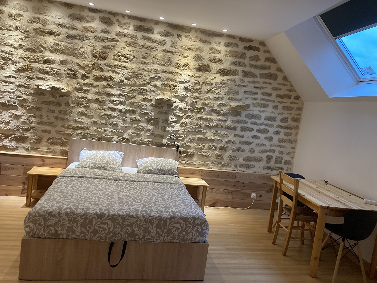Vous y trouverez un bureau ainsi que la télévision avec box TV Free et internet (en WiFi)
