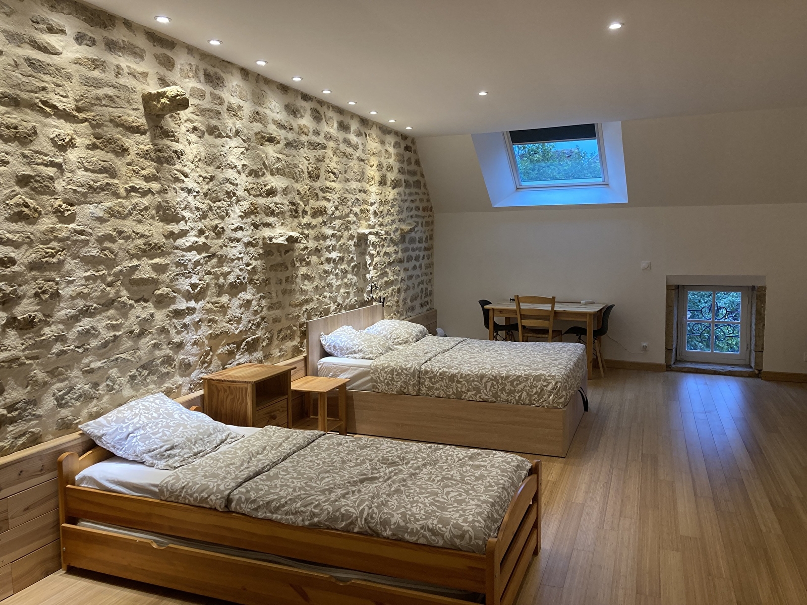 - une grande chambre de 35 m² comprenant 2 x lits de 140x190, 1 x lit de 90x190, 1 berceau