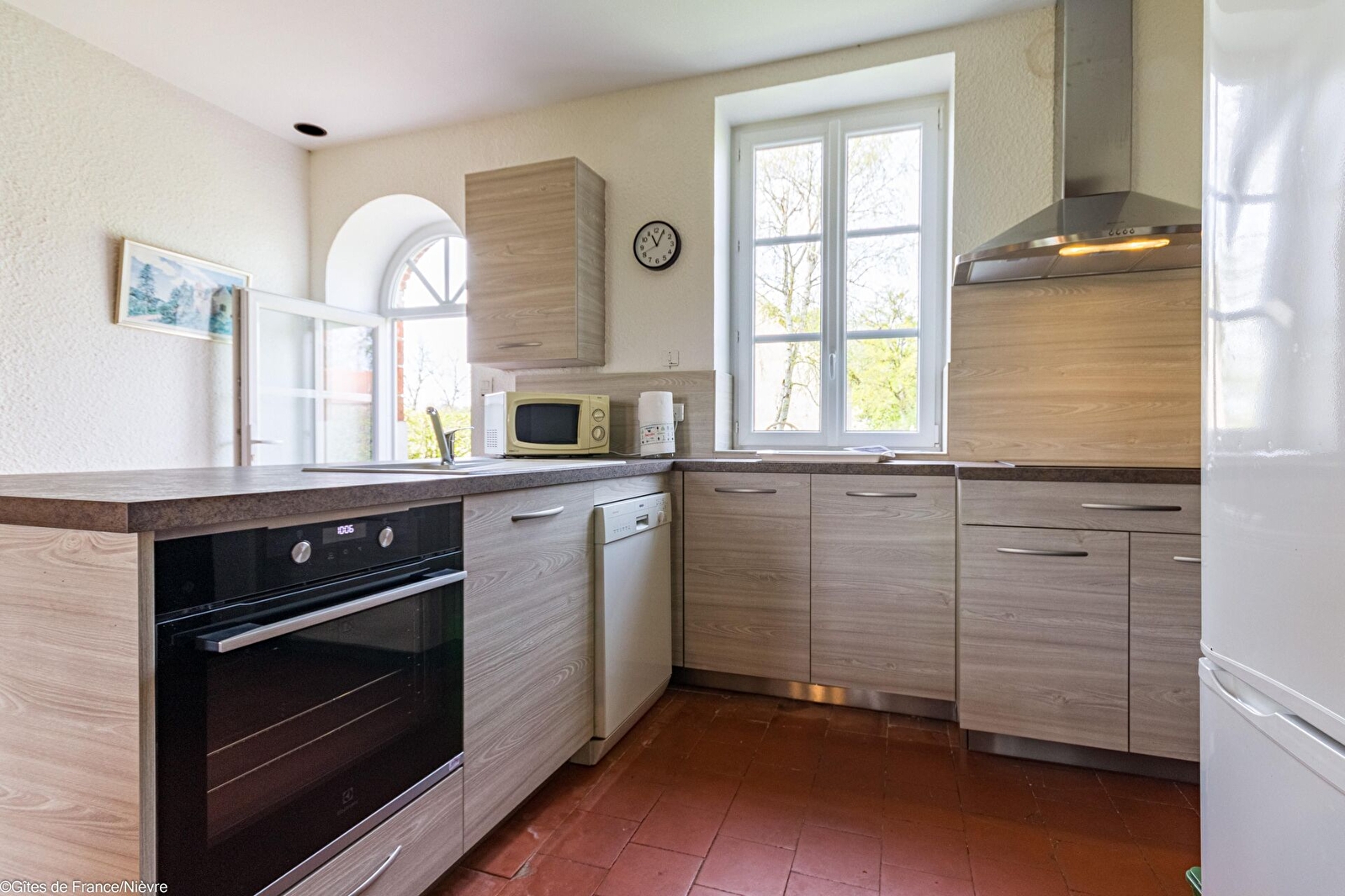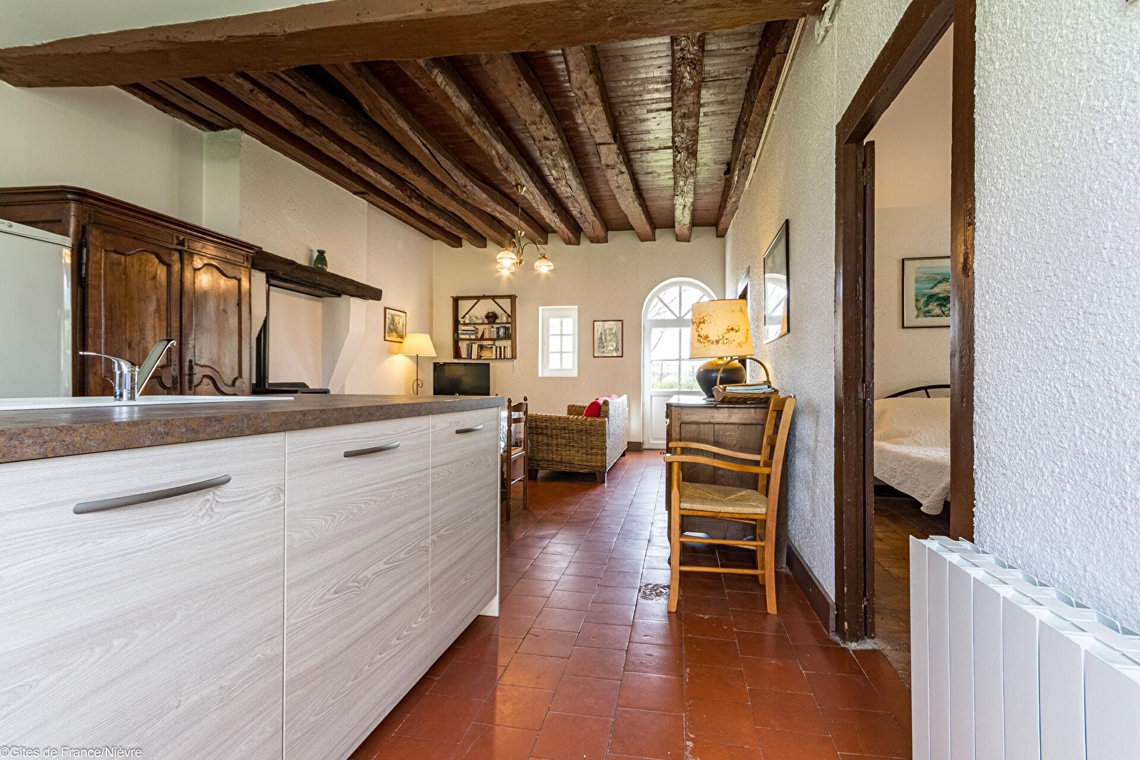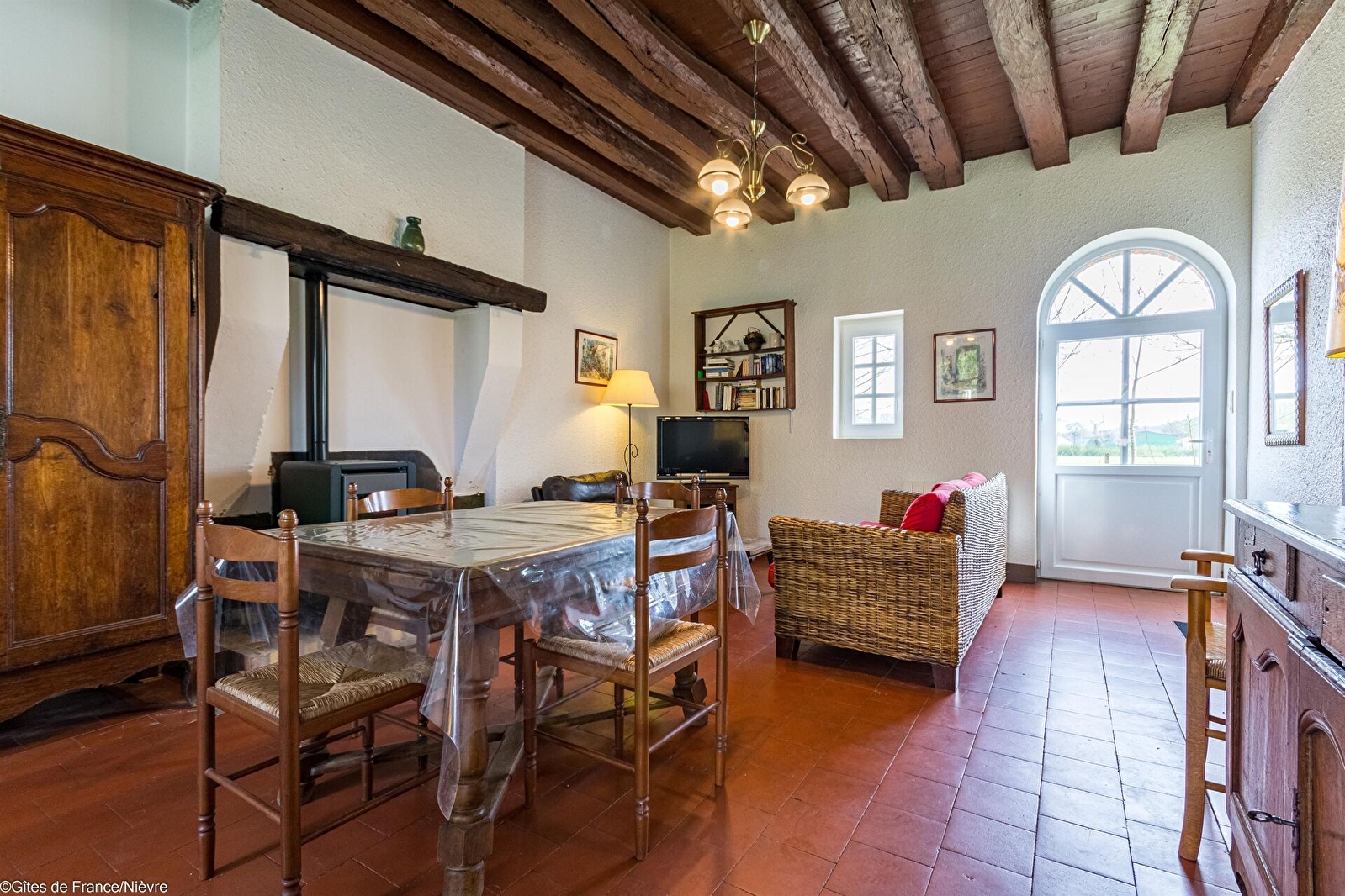 Gîte indépendant faisant partie d'un ancien domaine entouré de prairies avec jardin et terrain clos de 300 m². Grand séjour, cuisine intégrée et équipée, 1 chambre avec 1 lit 140 et 1 lit bébé, 1 chambre avec 2 lits 90x190, salle d'eau (douche grande dimension) avec wc. Dépendances. En bord de Loire où vous pourrez pratiquer la pêche et le canoë-kayak ou tout simplement admirer la faune. Aux portes du Morvan et de son Parc Naturel où sont balisés de nombreux sentiers de randonnées ou de balades en famille. Non loin de Decize avec son stade nautique équipé pour tous loisirs mais aussi sa promenade des halles, ses remparts, ses monuments. Les randonneurs à vélo pourront s'adonner à leur passe-temps favori au bord du Canal du Nivernais sur la voie verte, balisée par la véloroute. . De là ils pourront admirer les bateaux promenades. Nouvelle véloroute en bord de Loire ( Loire en bourgogne ) à 1 km du gîte.
