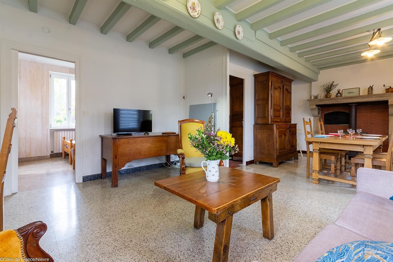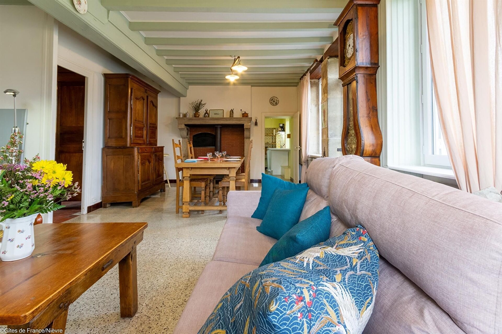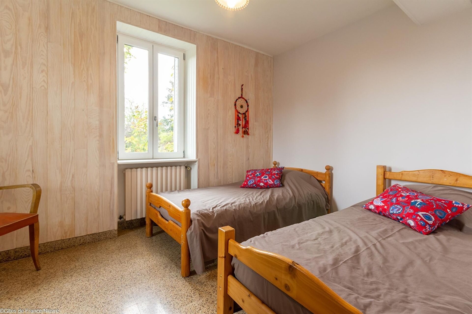 Maison individuelle dans une petite commune morvandelle avec un jardin en partie clos, tonnelle, verger. En rez-de chaussée surélevé, pièce à vivre avec salon ayant un canapé convertible pour 2 personnes, télé et poêle à bois, cuisine équipée, 2 chambres dont 1 avec 1 lit 160x200 et accès direct sur une petite terrasse, et l'autre avec 2 lits 90x190; une salle d'eau (douche grande dimension) et un wc séparé.