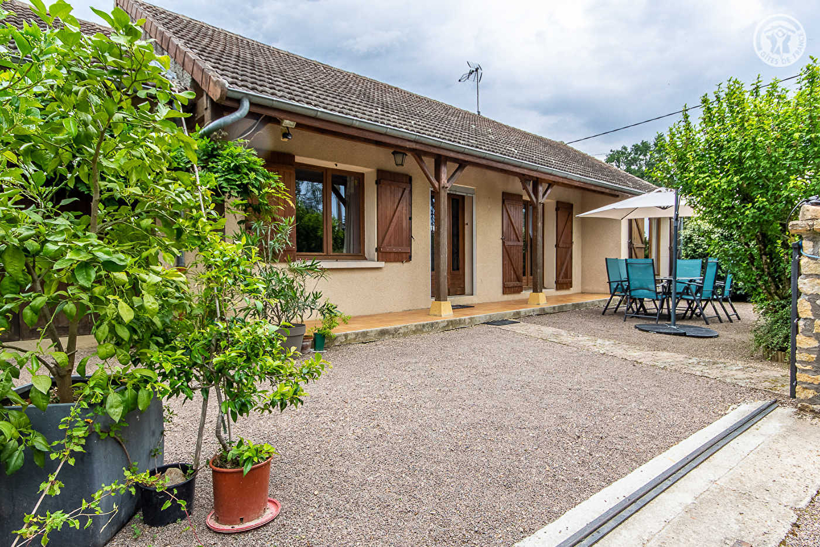 Composition : Maison individuelle jouxtant l'habitation des propriétaires (indépendance totale sans vis-à-vis). Plain-pied. Chauffage central fioul. Wifi. Séjour-cuisine avec accès direct à la terrasse. Babyfoot. Salon (convertible 2 p. 140x190cm en appoint) avec accès direct à la terrasse. Salle d'eau (douche+baignoire), WC indépendant avec lave-mains. 2 chambres (lit 2 p. 160x200cm / 2 lits 1 p. 80x200cm jumelables). Jardin + terrasse + parking privés. Commerces & services 6 km. Gare 8 km. Gare Creusot TGV 45 km.