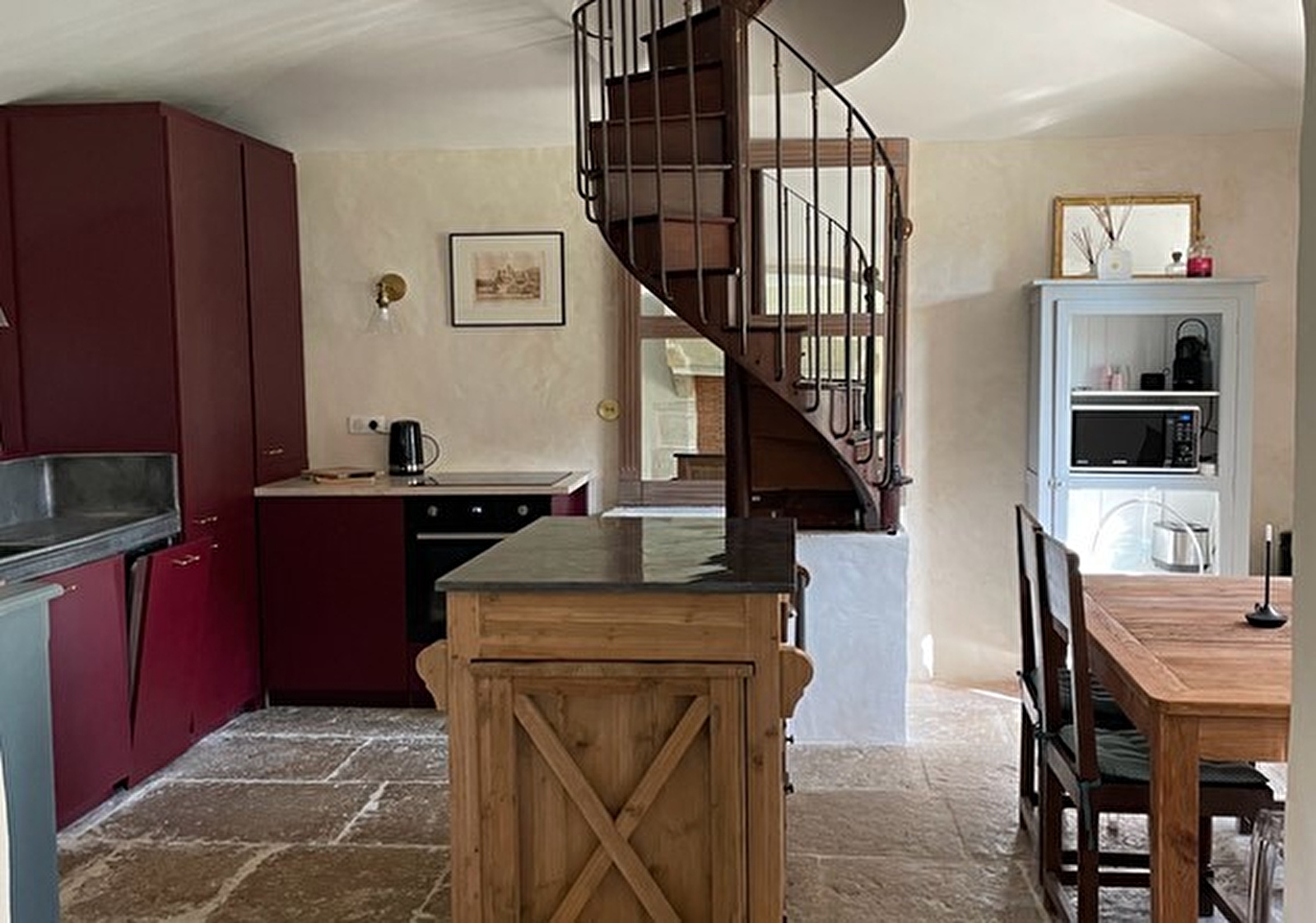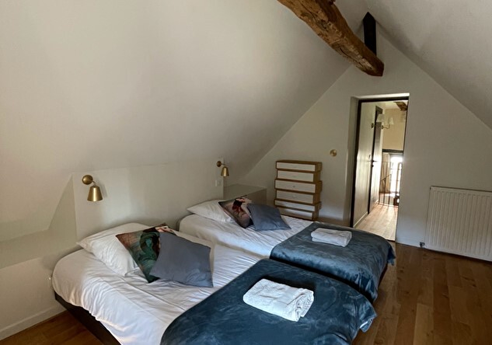 Le gîte du vigneron date du XVIIème siècle et se trouve dans la grande cour du château médiéval du château de Meauce. C’est la meilleure vue sur le château. Une belle et grande terrasse en bois, permet de passer de belles soirées sous un ciel clair et étoilée. Le gite dispose de deux chambres, chacune équipée de sa salle de bain avec douche. Une fois entrée vous êtes dans un beau salon avec une très grande cheminée ancienne et son poêle à bois fonctionnel. De belles dalles en pierre de Bourgogne sont sous vos pieds. Le salon donne sur une belle cuisine authentique avec son évier en plomb, et un vieil escalier à vis en bois. Une petite chambre au RDC avec une baie vitrée sur la campagne.